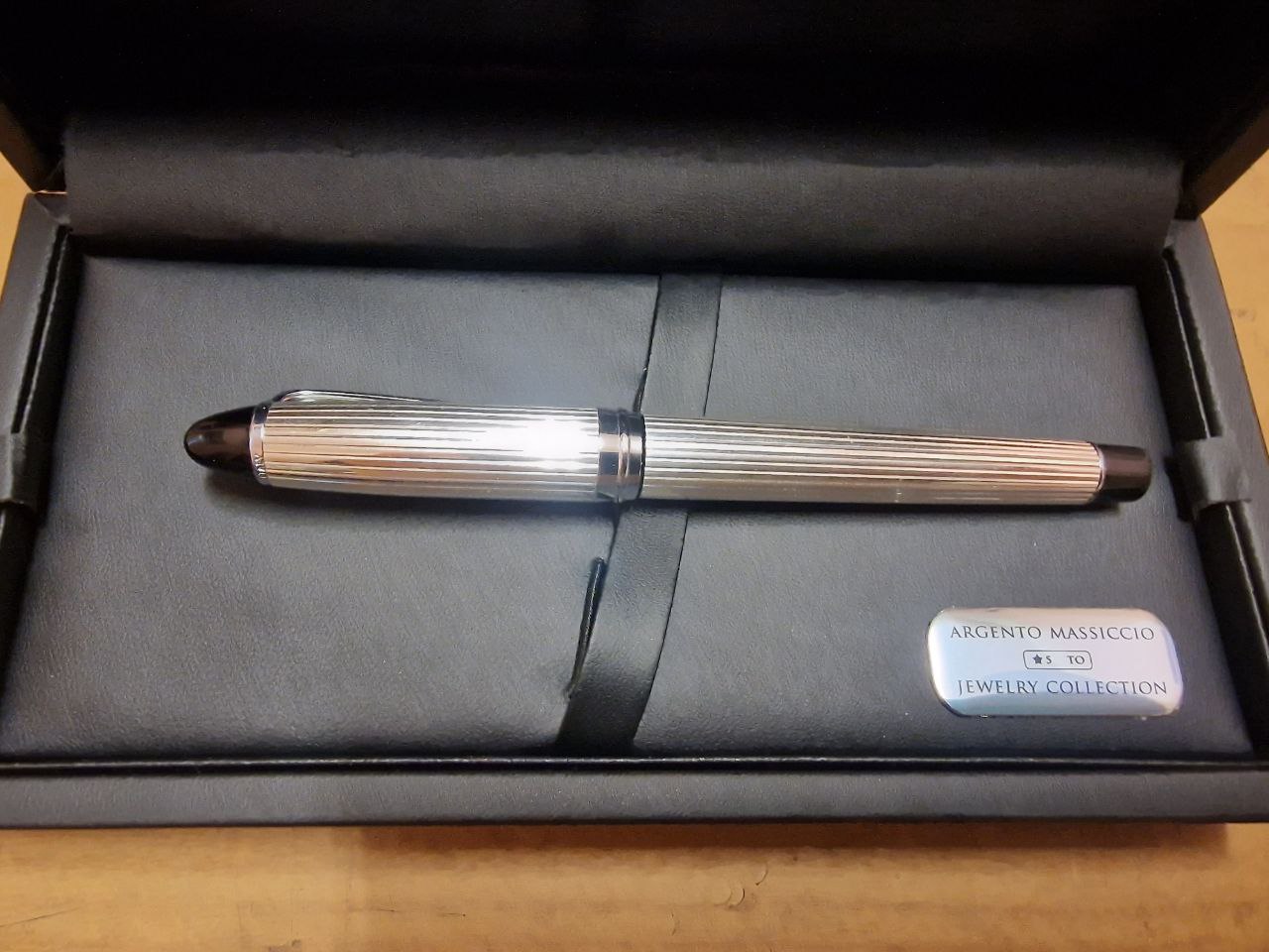 La penna, fin dalla prima apertura del pacco è apparsa esattamente per come me l'aspettavo, molto bella con le sue scanalature rigate e completamente lucente per via dell'argento utilizzato, che gli dona un aspetto da "Wow" o da prodotto di lusso, avrei apprezzato anche sul corpo della penna (tappo o pennino) qualche piccola scritta che riportasse il materiale utilizzato tipo come "Argento Sterling 925" o qualcosa del genere, chiaramente in puro stile Aurora, cioè evitando che ciò possa sembrare di cattivo gusto.