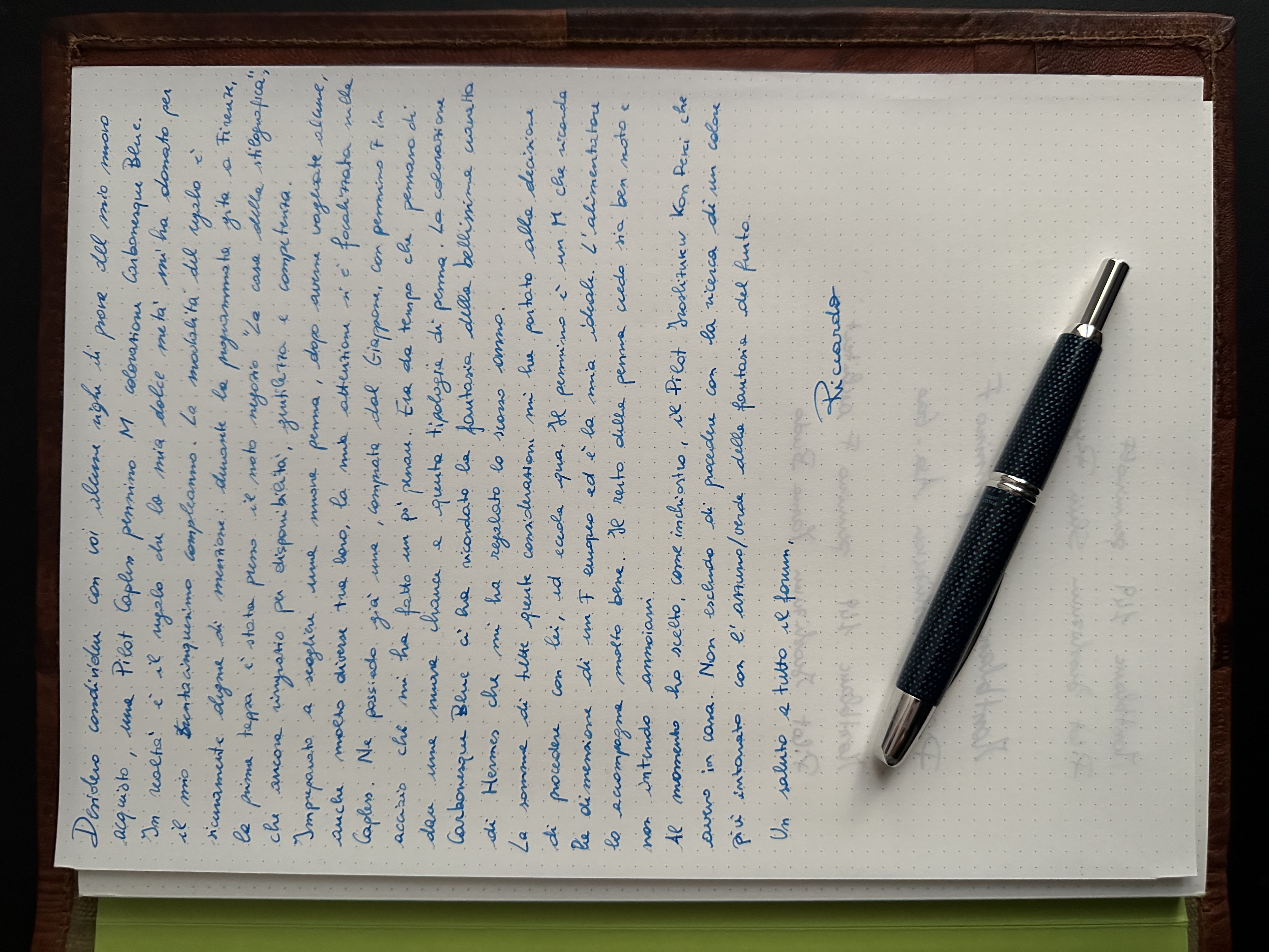 balthazar ha scritto: ↑mercoledì 13 dicembre 2023, 20:05 Confesso che questa bella recensione mi era sfuggitaLa penna è notevole, a mio parere bella (in quella livrea soprattutto) e funzionale, forse forse il Kon Peki è un tantino chiaro ... ma è solo un mio personalissimo parere. Comunque un bel regalo