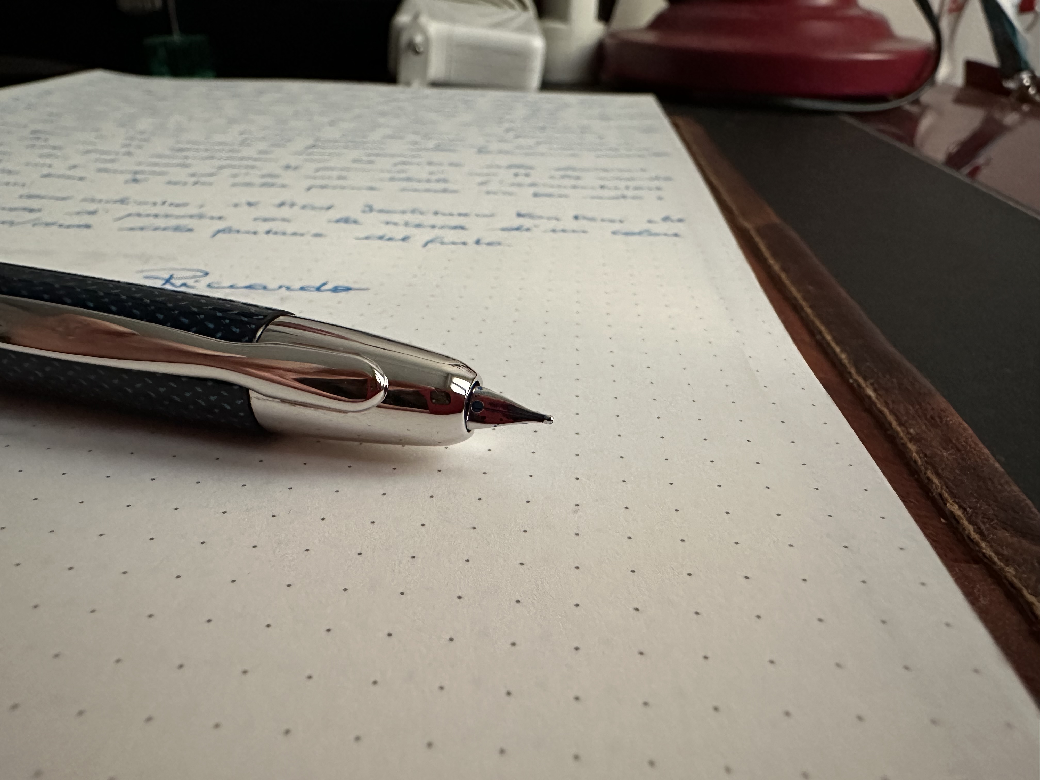 Bellissima recensione. Penna favolosa. Io da pochi mesi ho la versione in giallo con pennino fine e mi trovo benissimo e sono pienamente soddisfatto. Non mi convinceva e tutt'ora non mi convince la clip. Ma la qualità generale e di scrittura mi fa superare ogni titubanza.