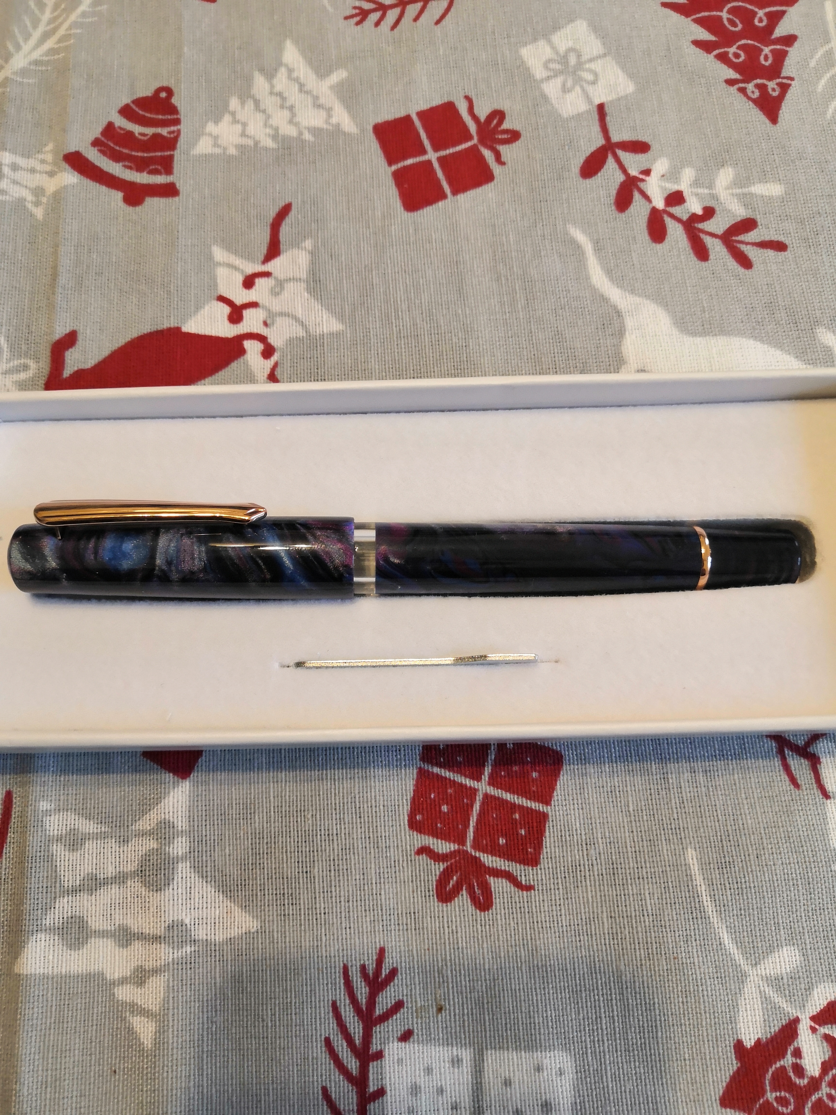 Il pennino è un extra fine molto sottile, levigato e molto scorrevole nonostante il flusso magro , questo le permette di scrivere senza problemi su tutte le carte, anche le peggio schifezze.
