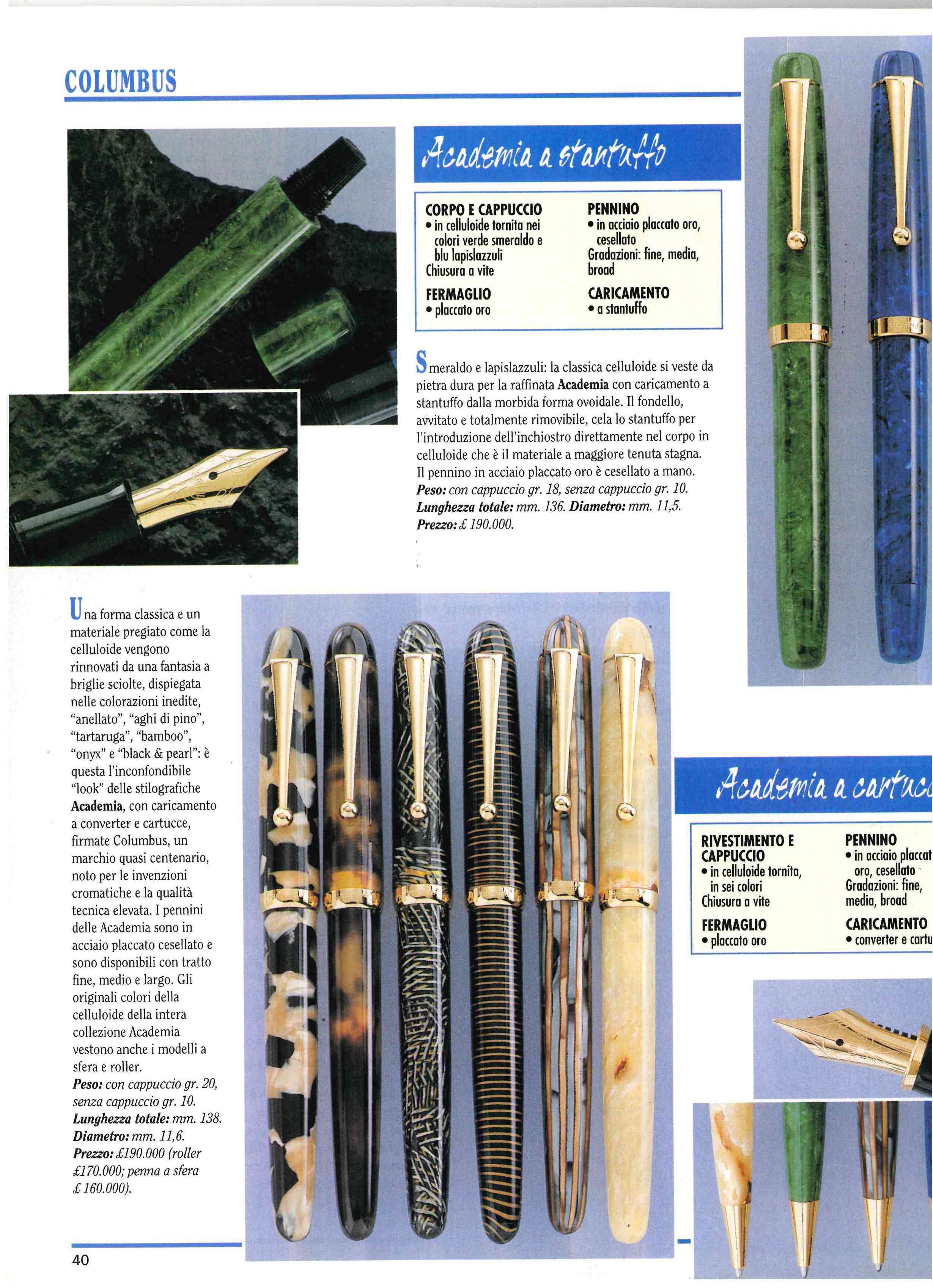 "Negli anni '90 la fortunata serie Columbus Academia ebbe una produzione limitata e quella penna è ora molto desiderata dai collezionisti.