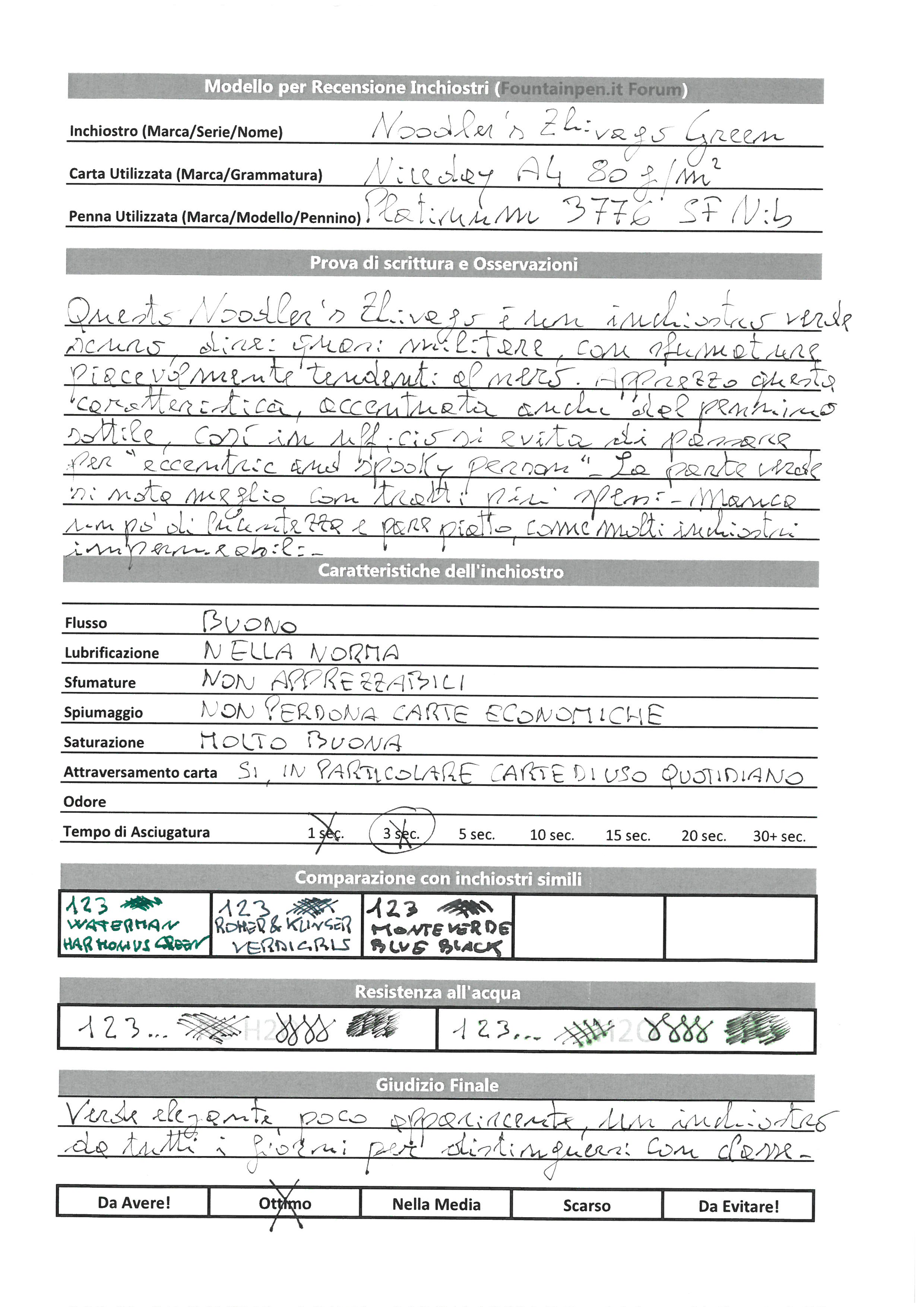 Mah ci sono tanti bei verdi in giro: Noodler's, Diamine, Herbin... peccato, perché in termini di cromia lo Zhivago prometteva davvero bene! :(