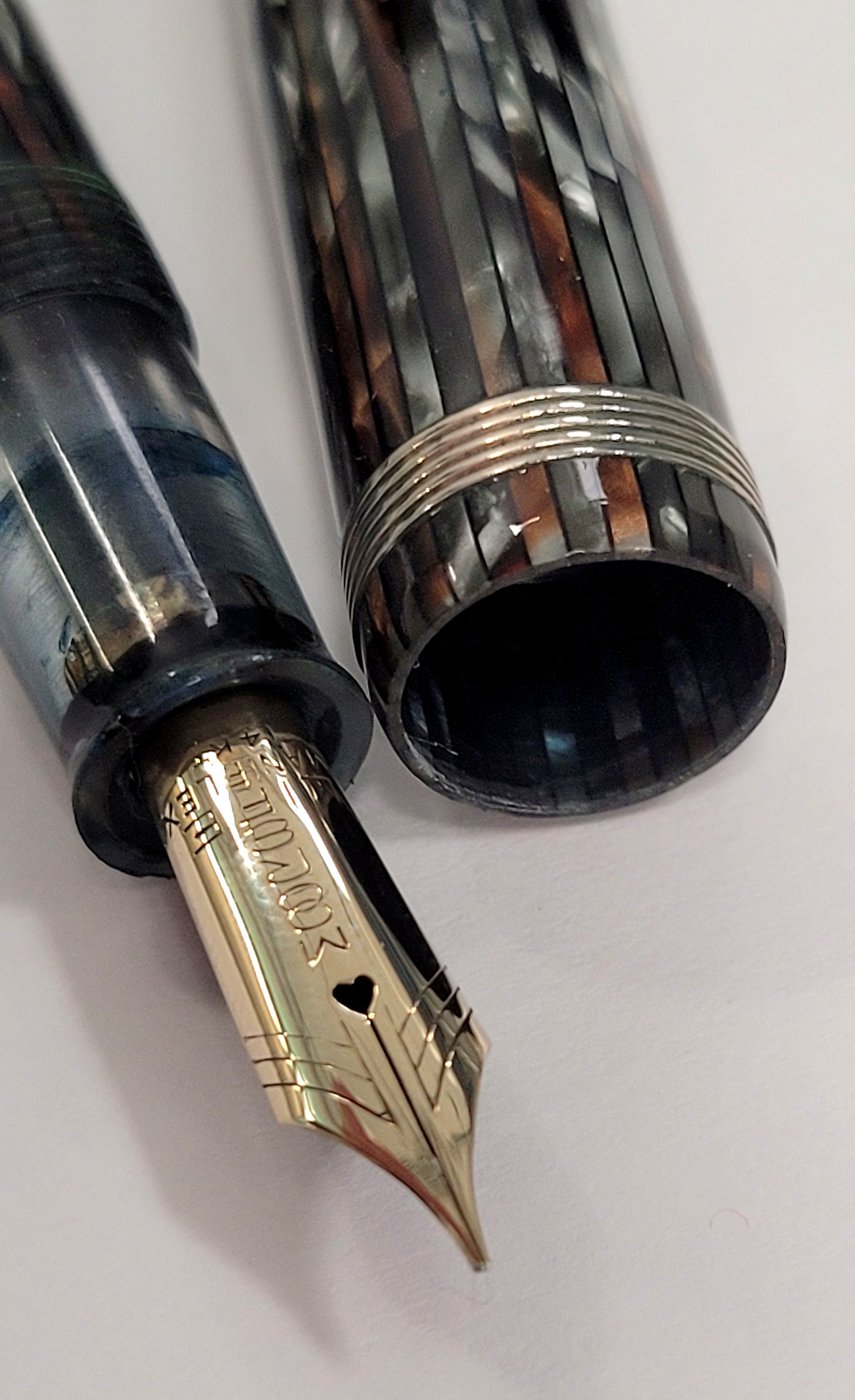 Questo determinato tipo di celluloide sembra essere stata apprezzata all'epoca , qui una serie di penne dell'immediato dopoguerra (il periodo è all'incirca quello della tua)