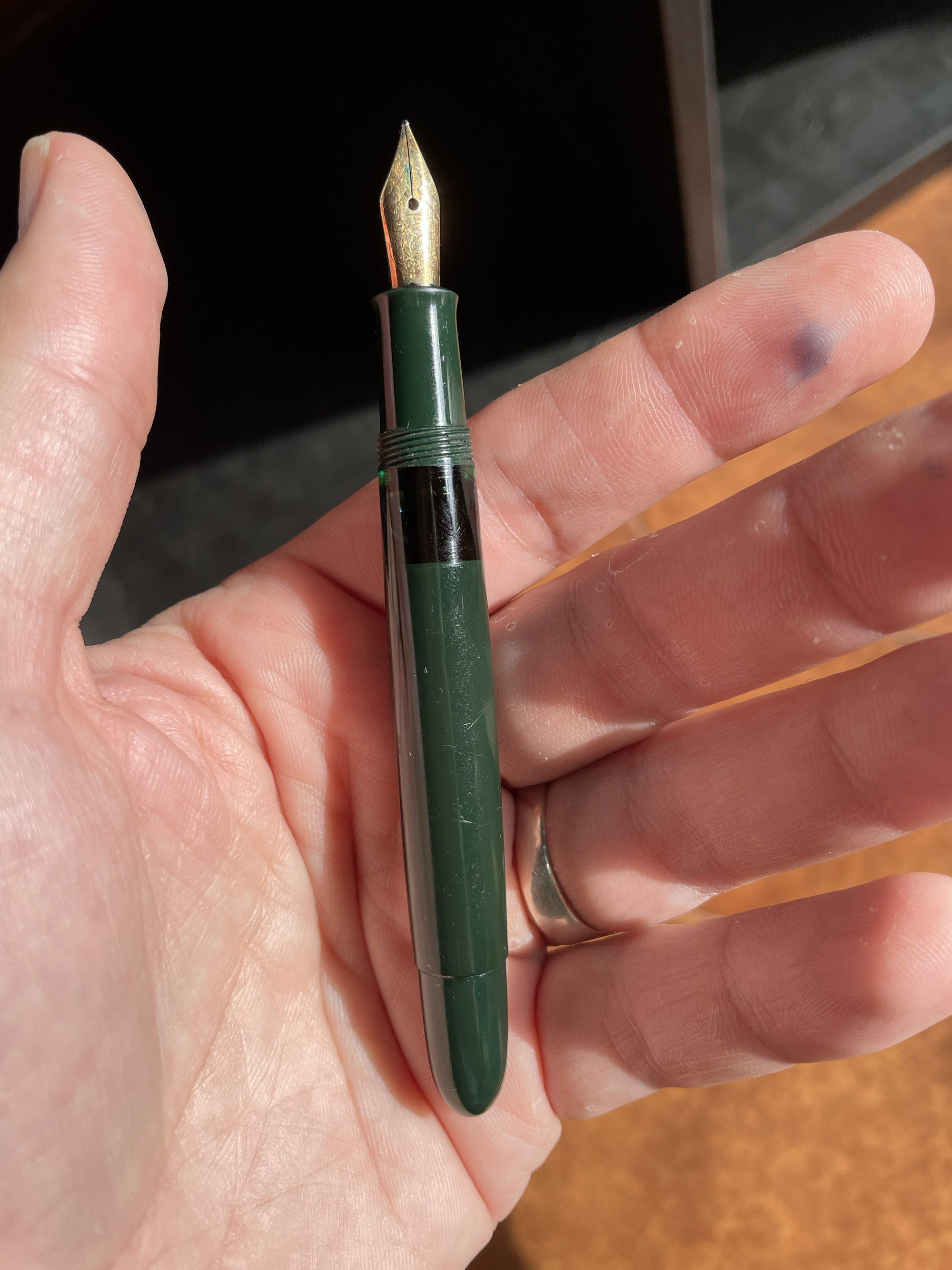 Comunque l'alimentatore ha le canne parallele al pennino, quindi ebanite, e quando ieri l'ho smontato pareva particolarmente asciutto, poco bagnato di inchiostro.