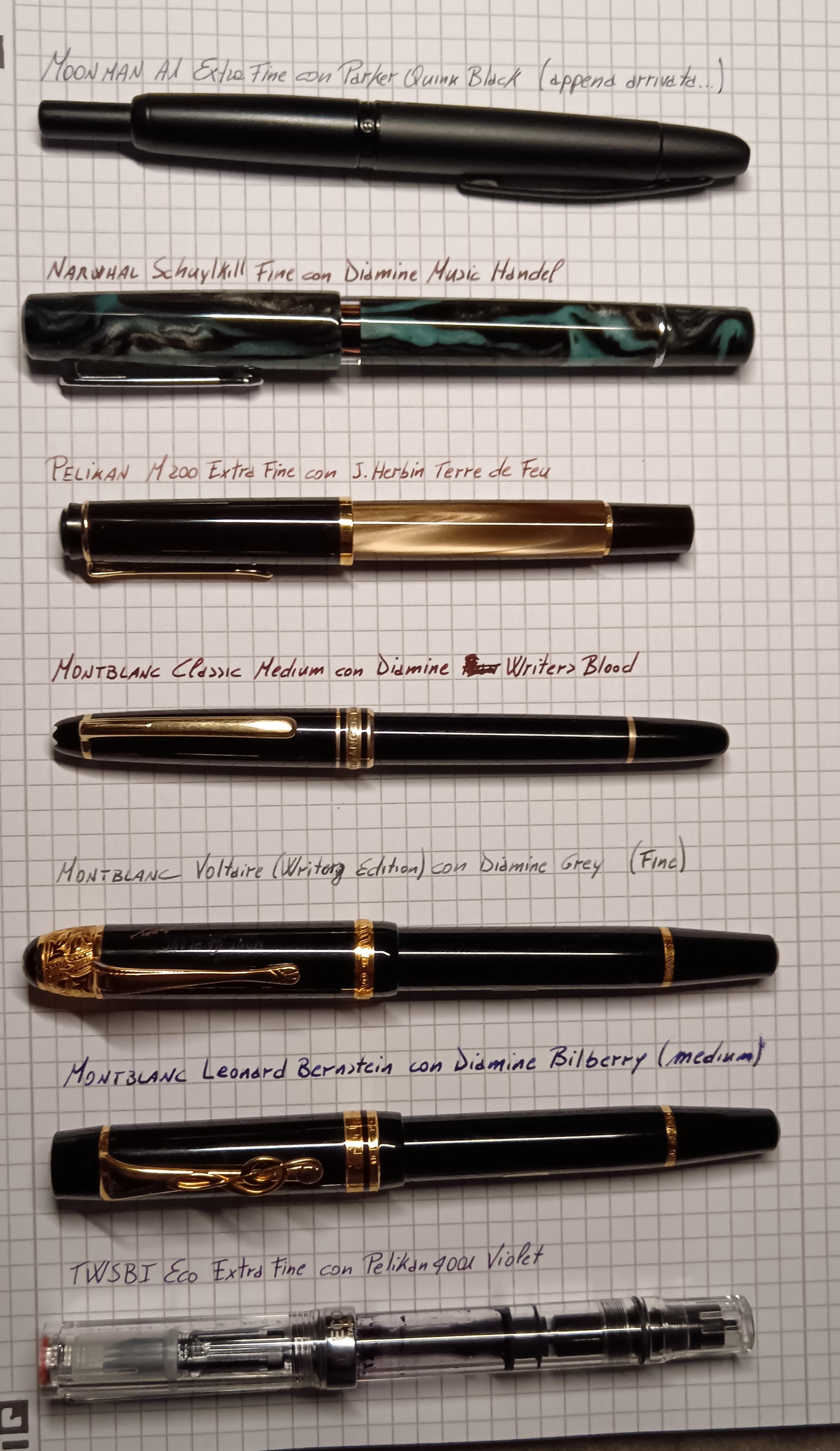 Koten90 ha scritto: mercoledì 7 febbraio 2024, 22:51 Anche io non mi faccio problemi a lasciarle inchiostrate. È il bello di avere penne che non soffrono di evaporazione, in cui l’inchiostro rimane sempre uguale e il pennino sempre bagnato.