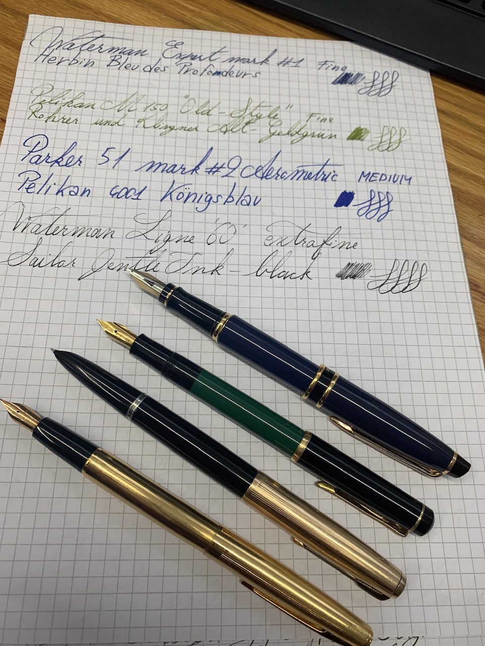 Waterman Ligne 60, pennino EF, con inchiostro Sailor Jentle Black, scorbutica e graffiante, non è facile da usare, come una vecchia auto sportiva anni '60, ma se non ti giri in curva e non finisci nel fosso, ti regala un fascino unico.