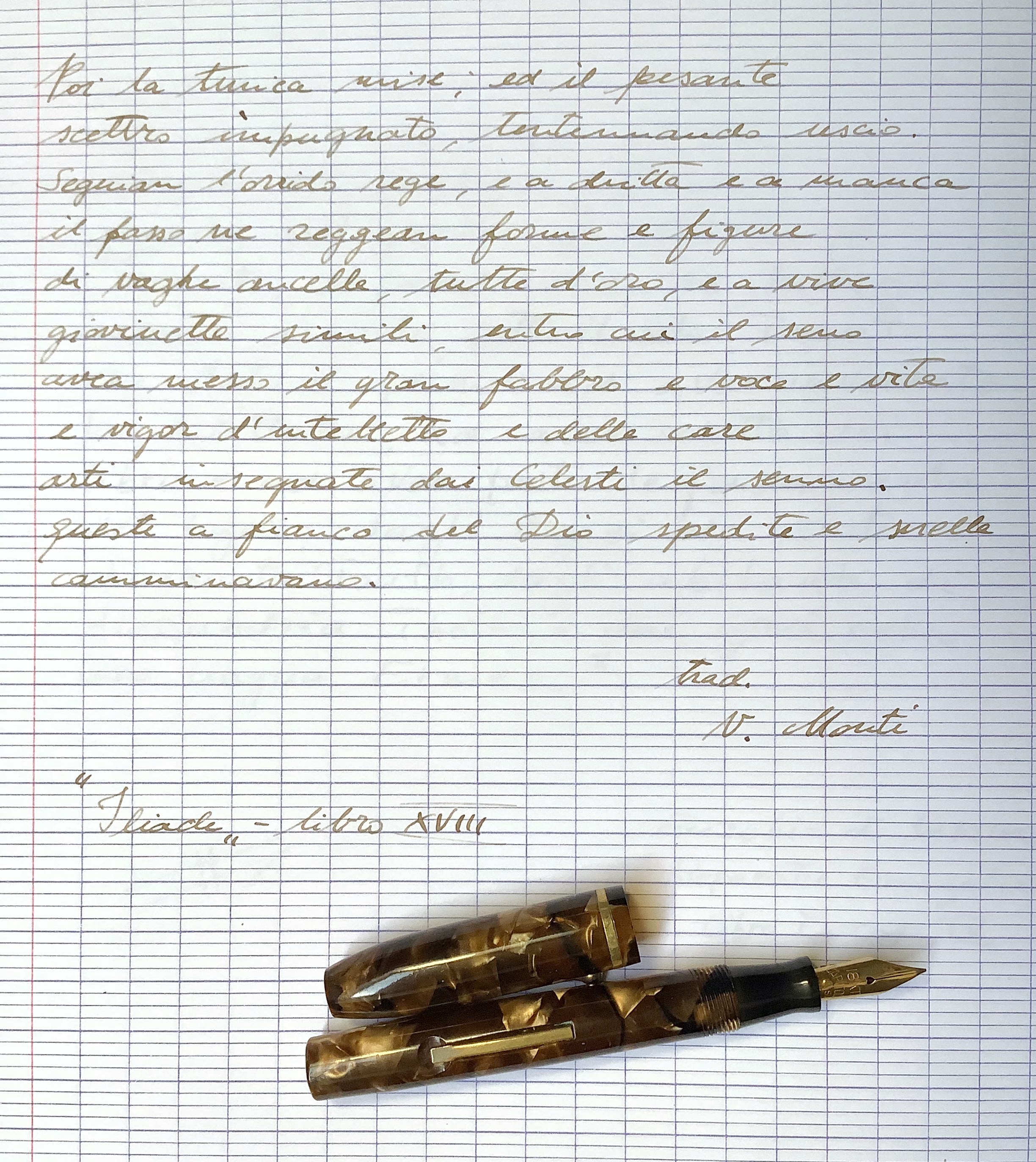 Belle - molto belle - le penne, azzeccati gli inchiostri, elegante la grafia: complimenti :thumbup: peccato per il reticolo della carta - molto marcato e fitto - che offusca leggermente l'armonia del tutto