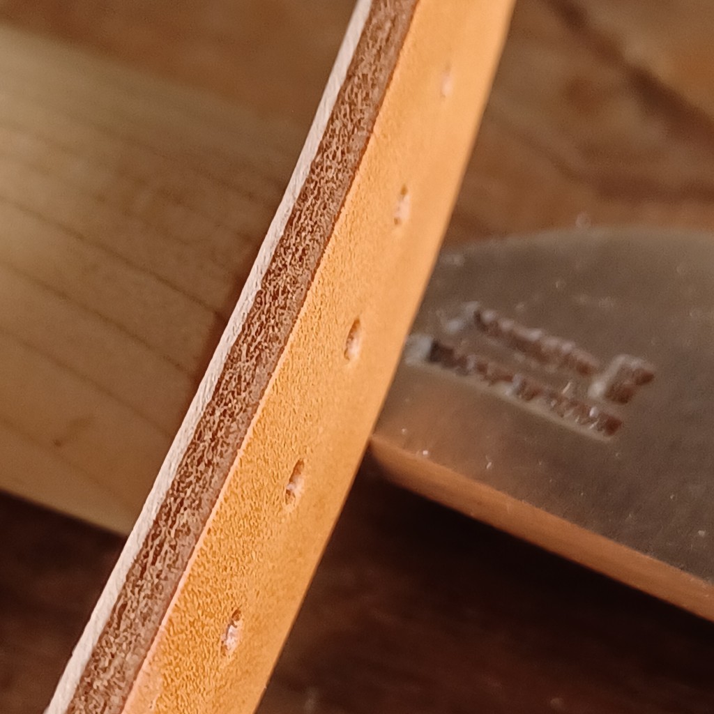 Ne ho fatti due, diversi nella tipologia del filo e del pellame che però rimane pelle bovina pieno fiore per tutti e due, usata anche per il rivestimento interno che visto il contatto con il sudore e lo sfregamento ho pensato dovesse essere una pelle di prima qualità.