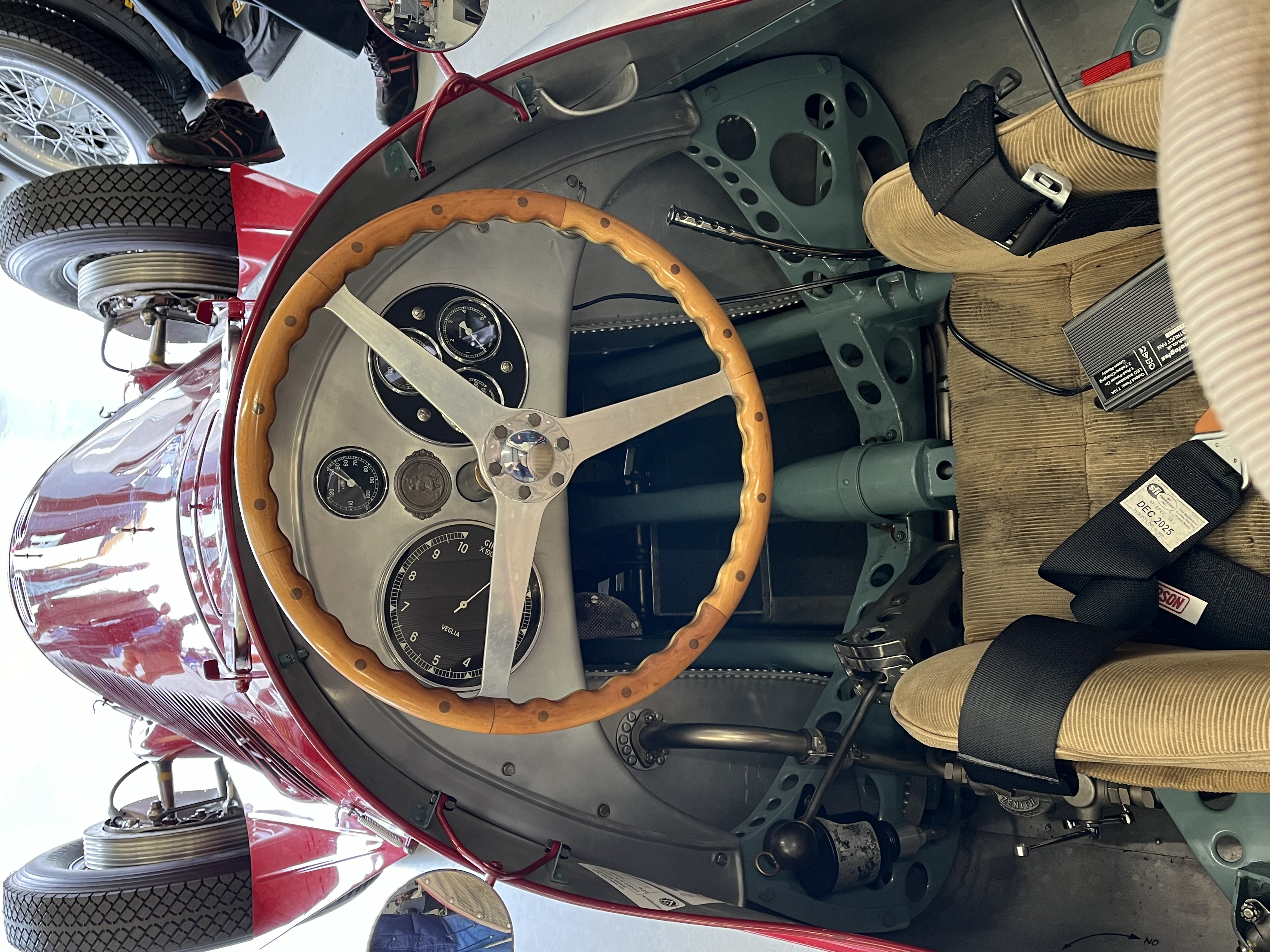 Curioso il San Cristoforo che campeggia sopra la colonna di sterzo dell'Alfa Romeo. La fede conforta anche i gentleman drivers.