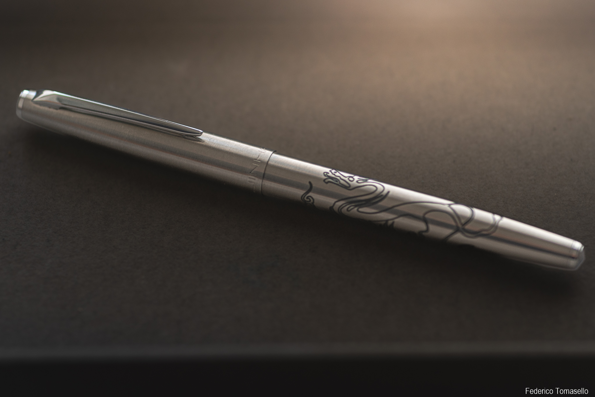 Monta un pennino EF, ha un tratto veramente sottile e non perde un colpo in nessuna occasione, pur non avendo praticamente flusso.