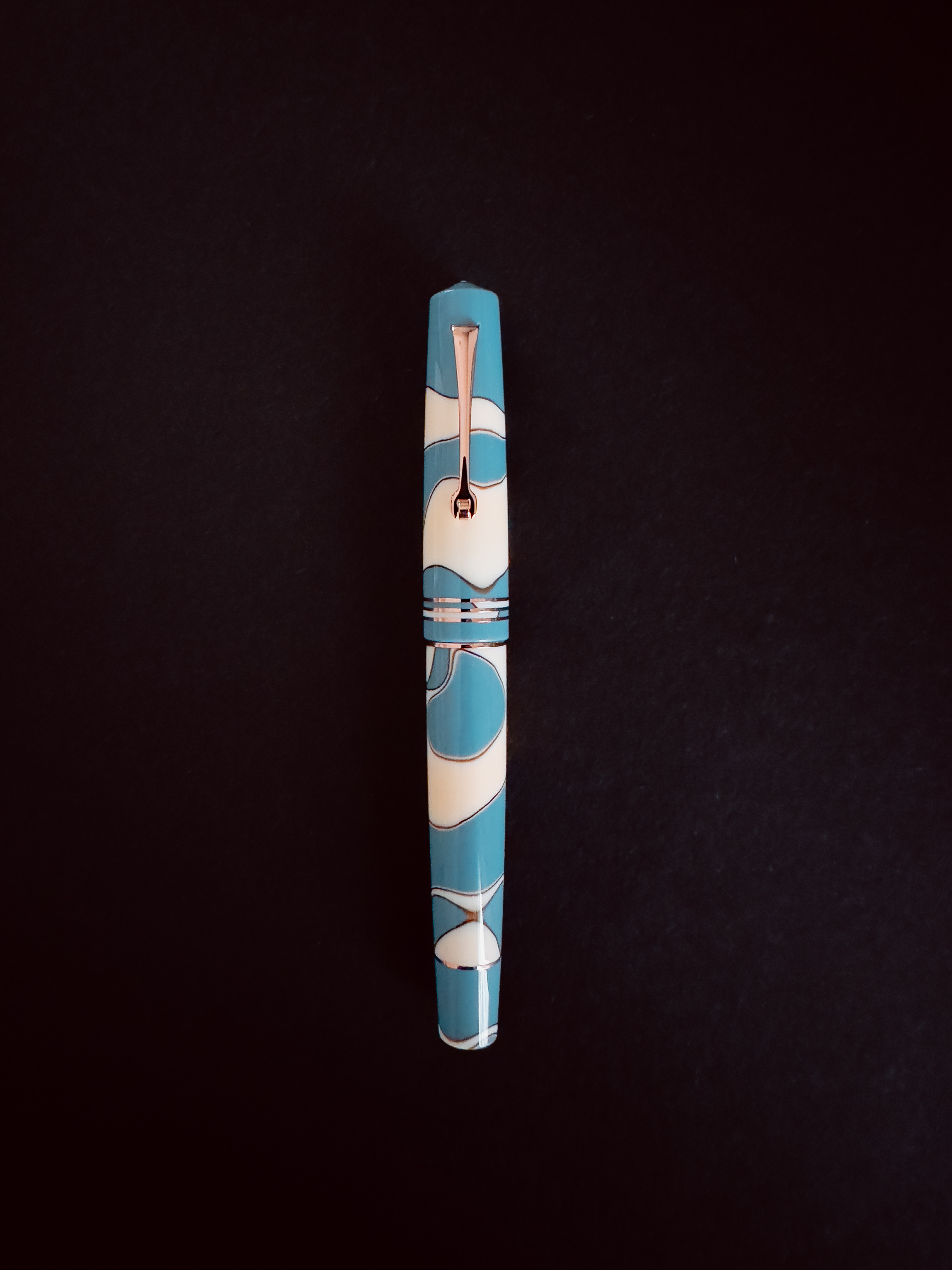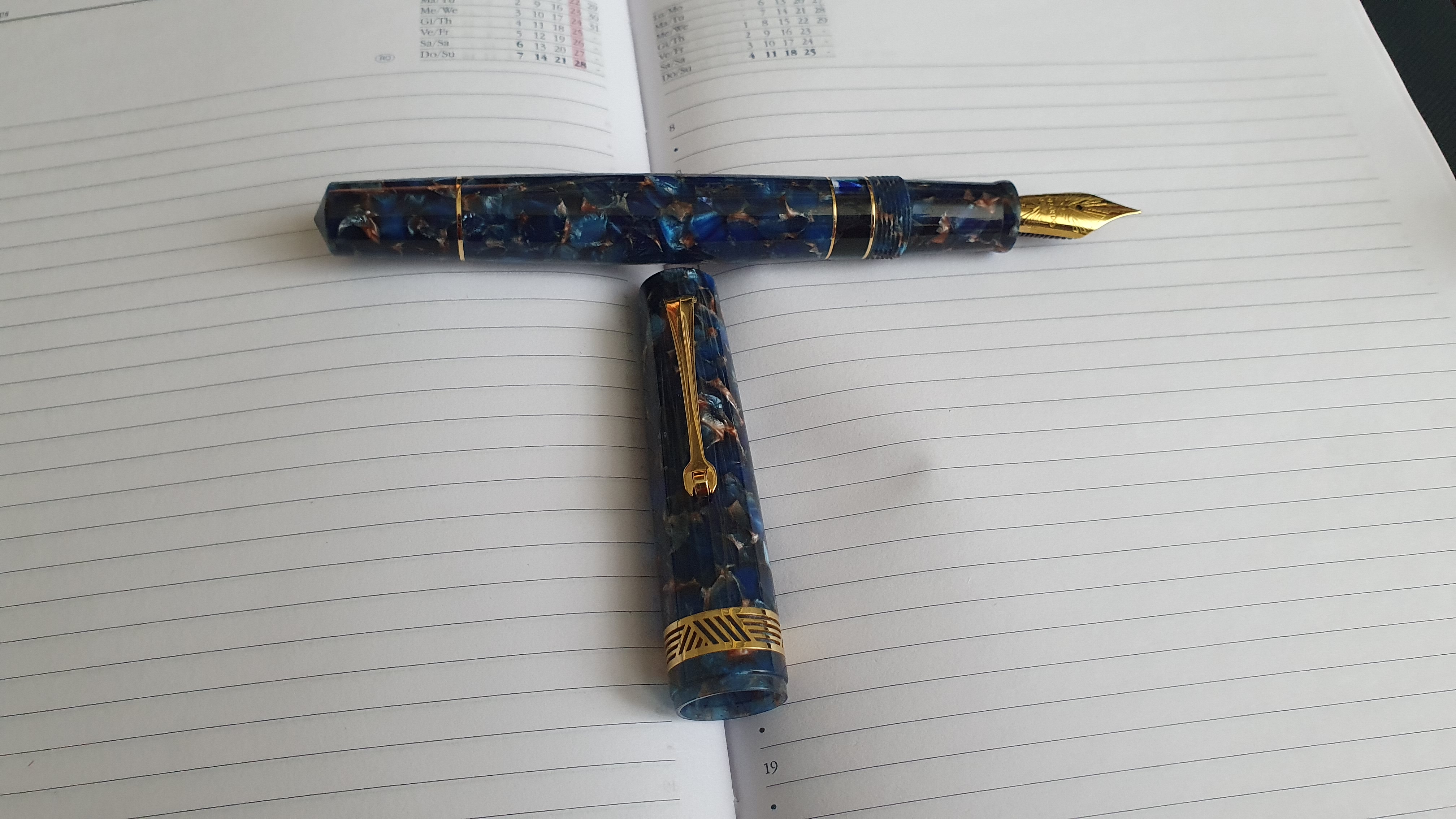 Dal vivo è effettivamente molto più bella che in foto, ma soprattutto sono rimasto contentissimo del pennino. Accidenti è un burro, proprio come piace a me. Non avrei mai immaginato il pennino mi potesse piacere al pari, se non più, di altri marchi blasonati per la scorrevolezza del pennino. Inoltre è leggera ed ergonomica più di come l'immaginavo, potrebbe tranquillamente diventare la mia principale per uso quotidiano.