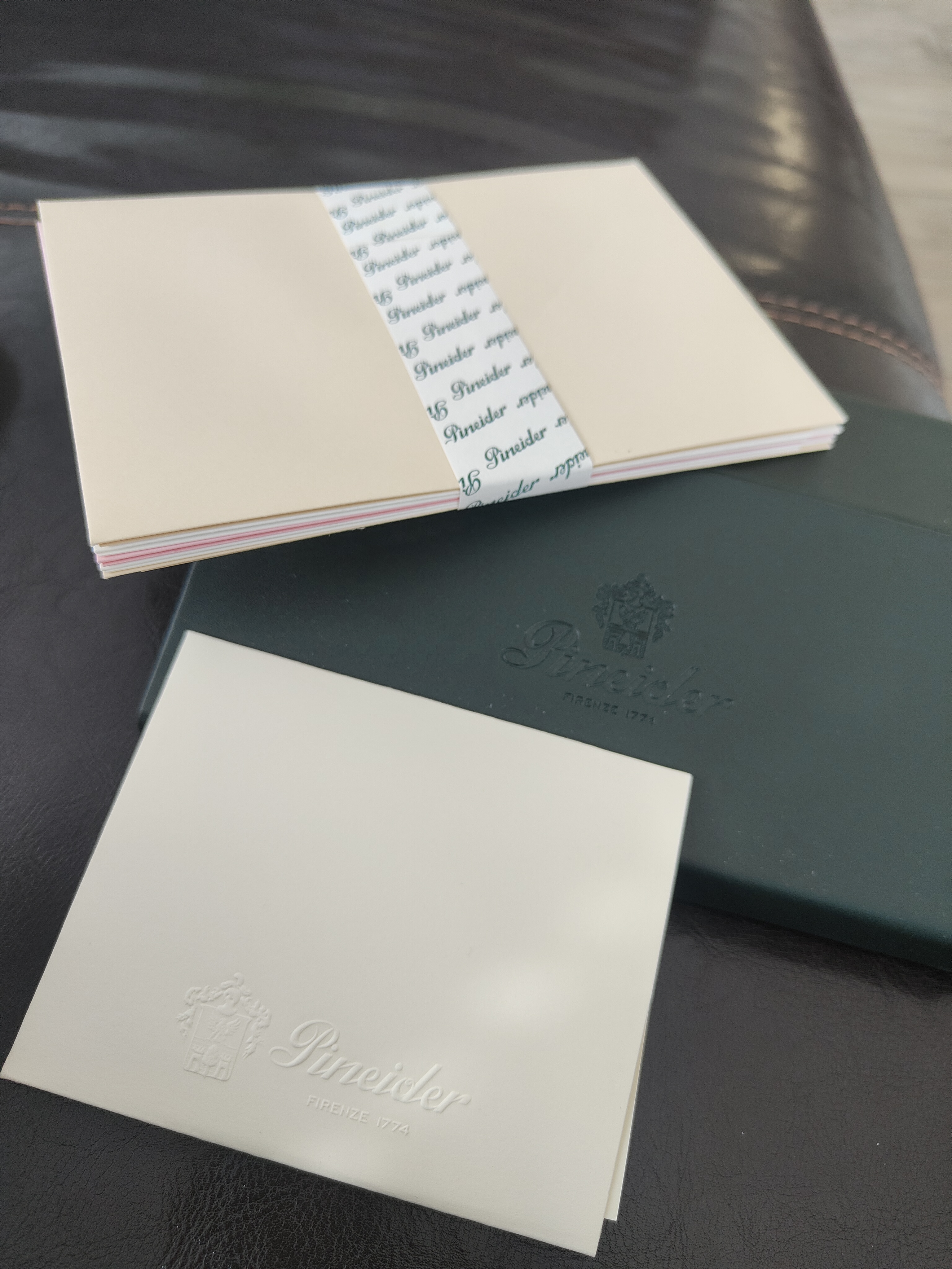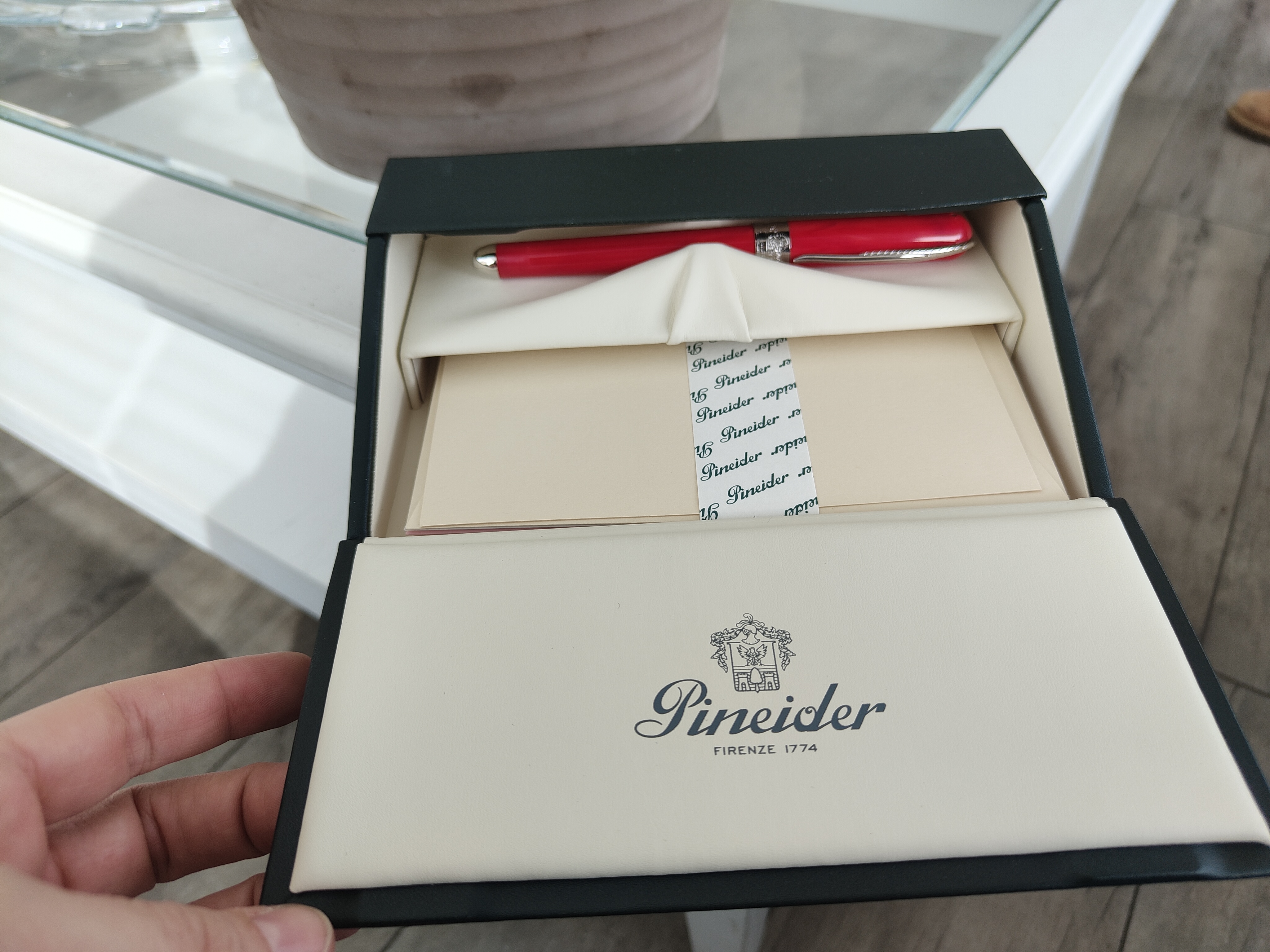 Devo ancora provarla perché sono fuori casa, ma non resistevo, magari scrive malissimo, gratta tantissimo etc ... però...è arrivata in un cofanetto bellissimo, con annesse buste e biglietti di vari colori e già così ho pensato "ottimo acquisto