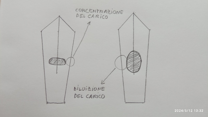 Su questo aspetto ho fissato la mia attenzione perché il superamento del limite di elasticità bisognerebbe scongiurarlo in ogni modo. Dalle mie prove emergerebbe un'interessante constatazione. Tu hai prestato estrema attenzione al collocamento della linea di piegatura. Ponendola sempre più vicina alla base del pennino. È chiaro che in quel punto il carico di forza che produce la flessione è concentrato laddove l'incisione si avvicina al bordo esterno del pennino. Ovviamente se l'incisione è ad angolo stretto il carico verrà concentrato su una porzione estremamente esigua di lamina. Se invece l'intaglio fosse ad angolo più ampio ne verrebbe coinvolta una parte maggiore di lamina diminuendo il carico puntiforme e mantenendo l'effetto di apertura in quanto la distanza tra intaglio e bordo esterno non varierebbe. Possibile?