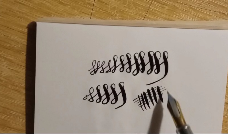 I am conducting a series of tests to thoroughly understand the use of the overfeed. I believe the technique developed by Lord Cactus is extraordinarily effective. However, pens, nibs, and feeds vary, and having precise and infallible guidelines is not so straightforward.