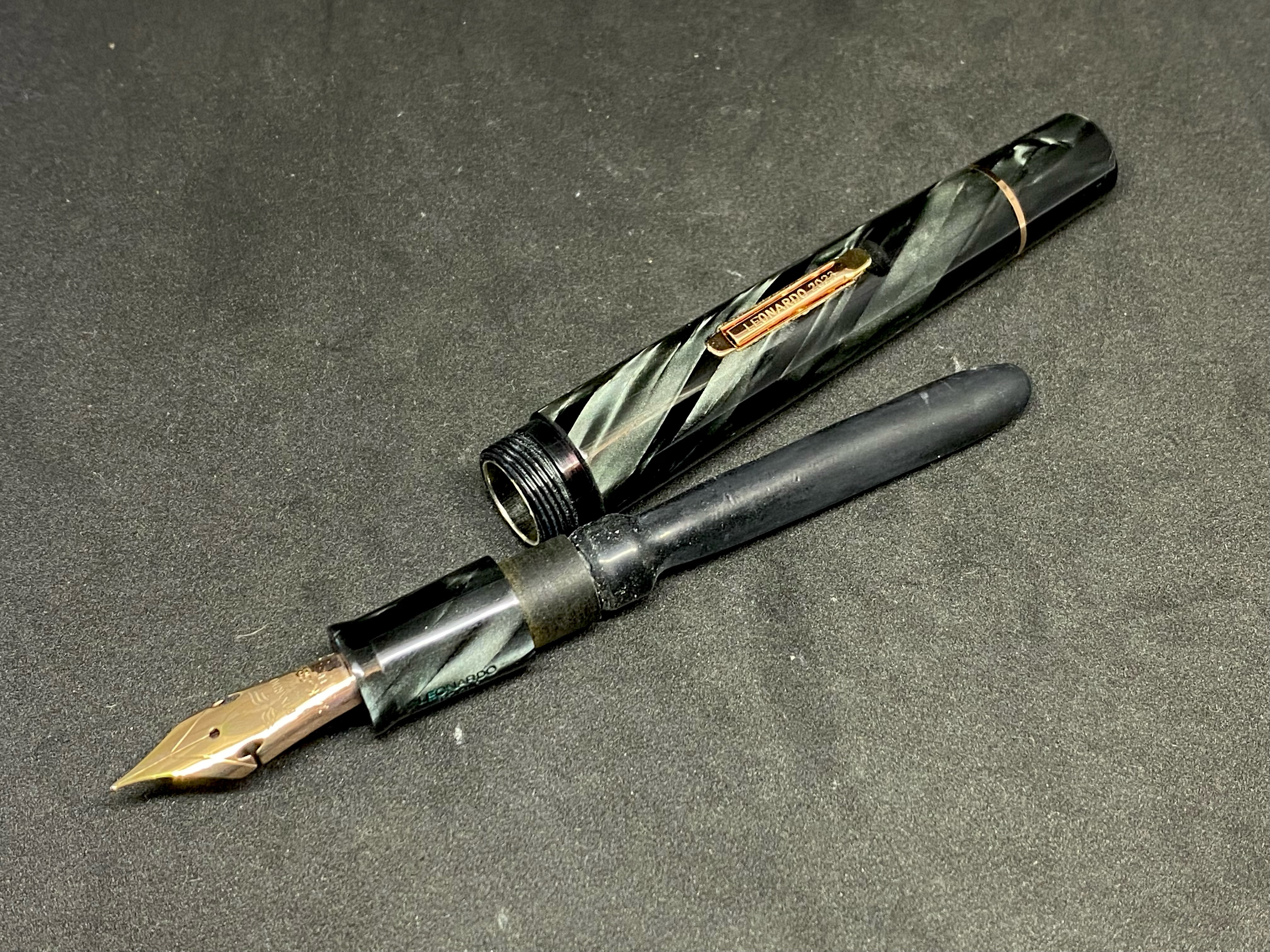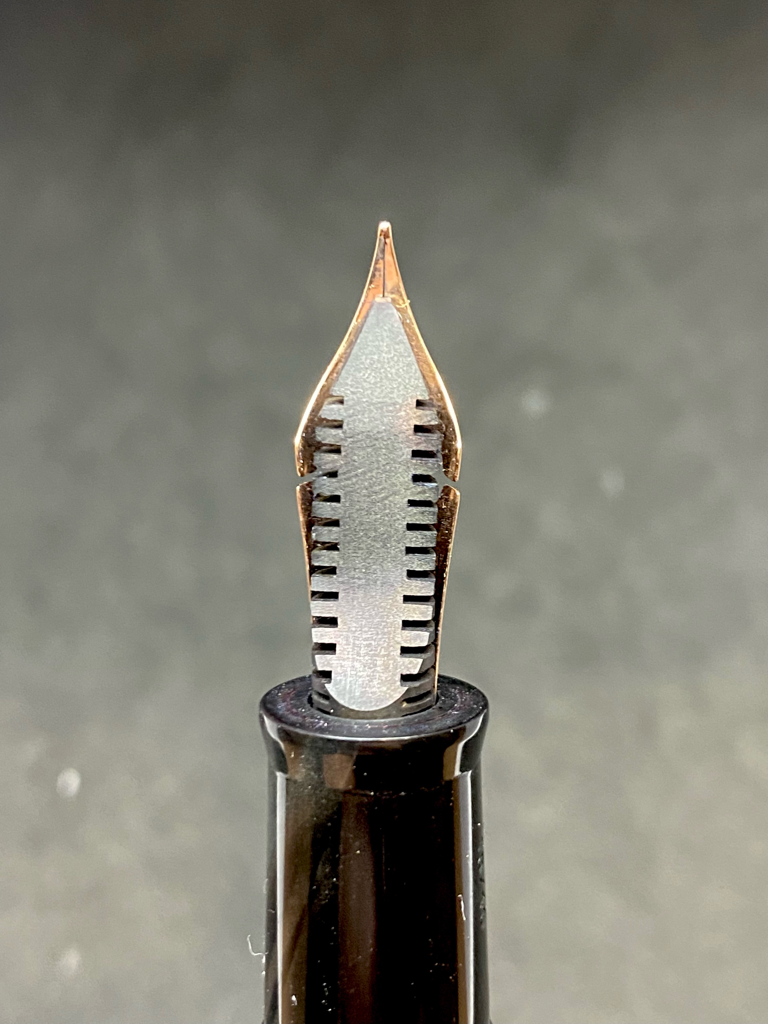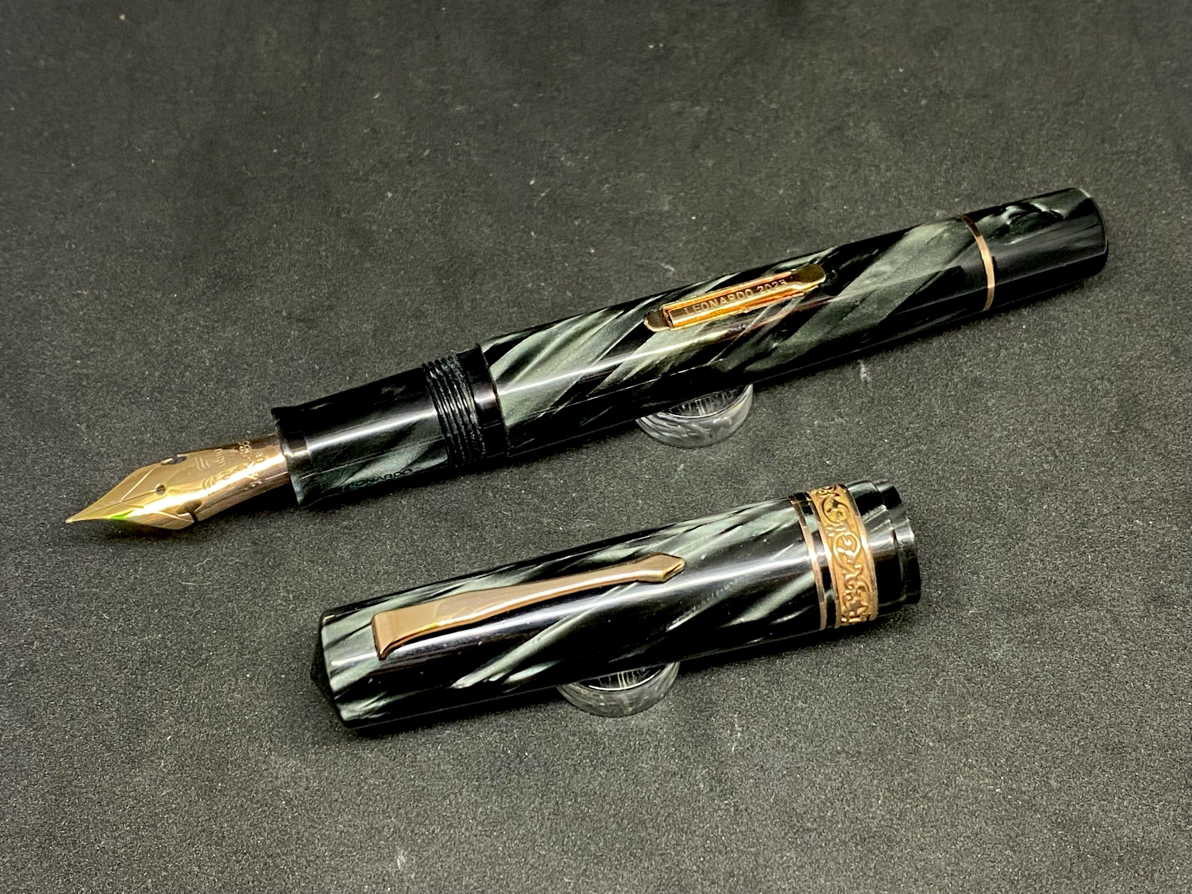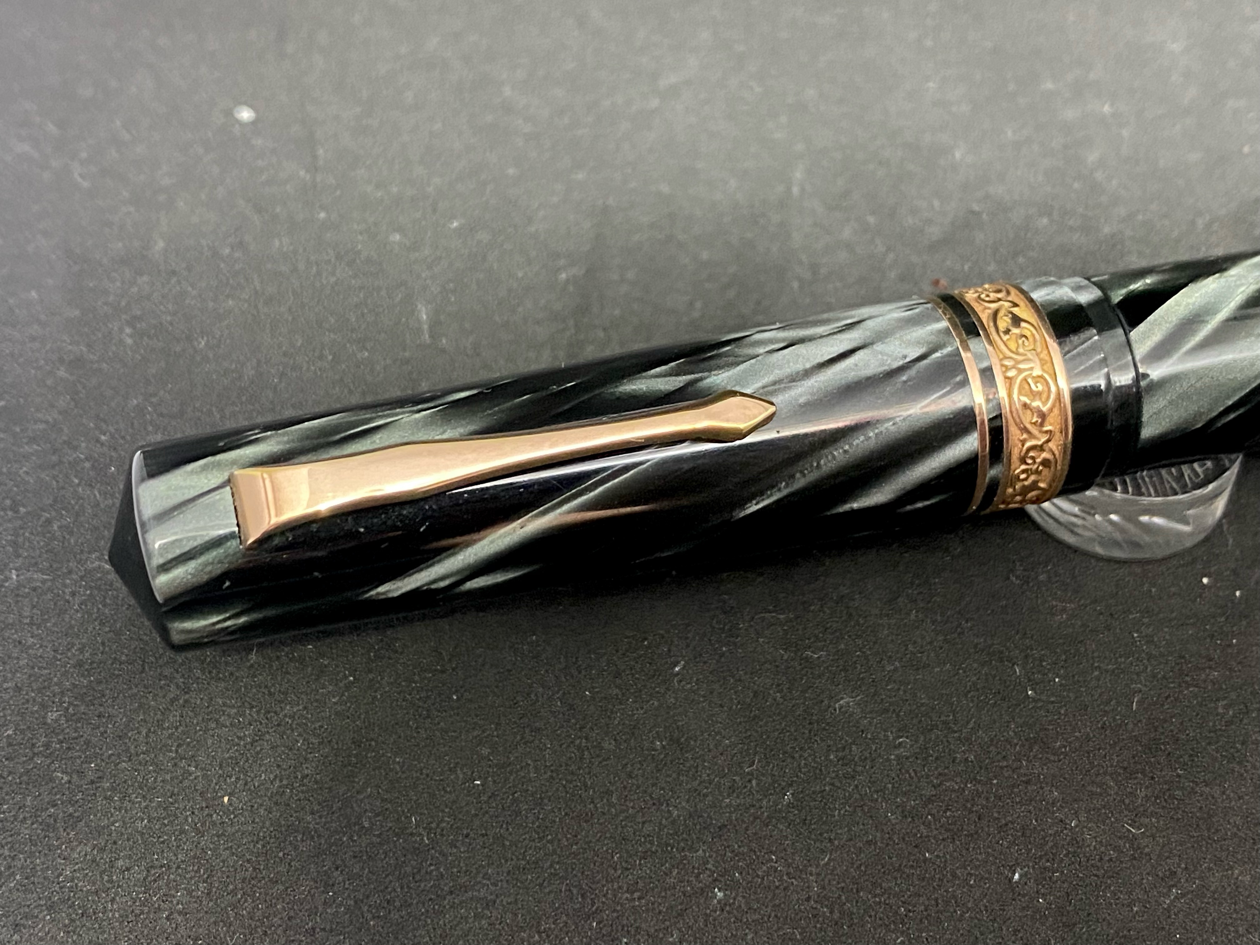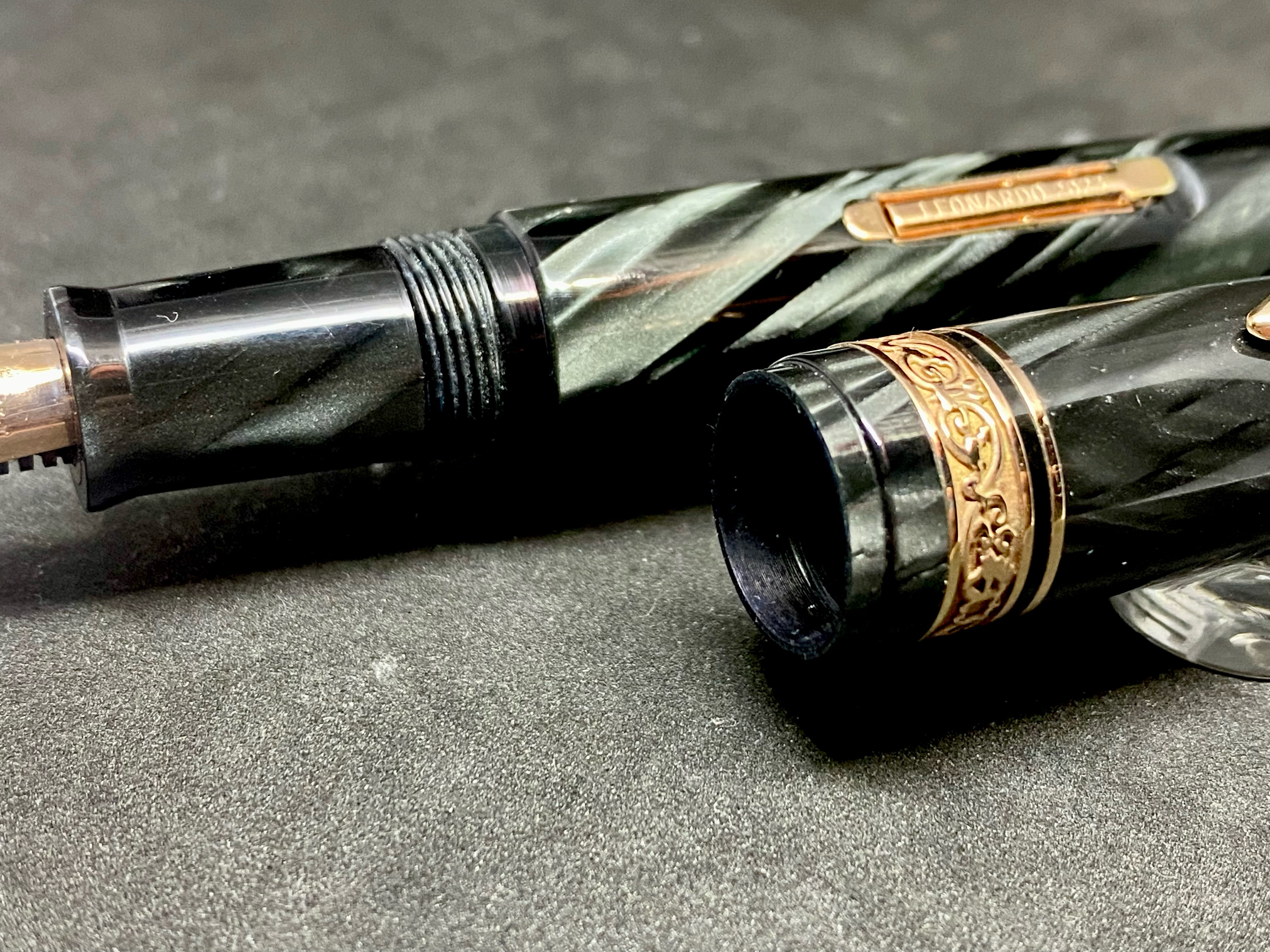Anche un appassionato di penne vintage può apprezzare la linea assolutamente classica, il sistema di carica a levetta, la celluloide favolosa… sembra veramente una penna prodotta non oggi ma da un secolo. Complimenti anche a Leonardo.