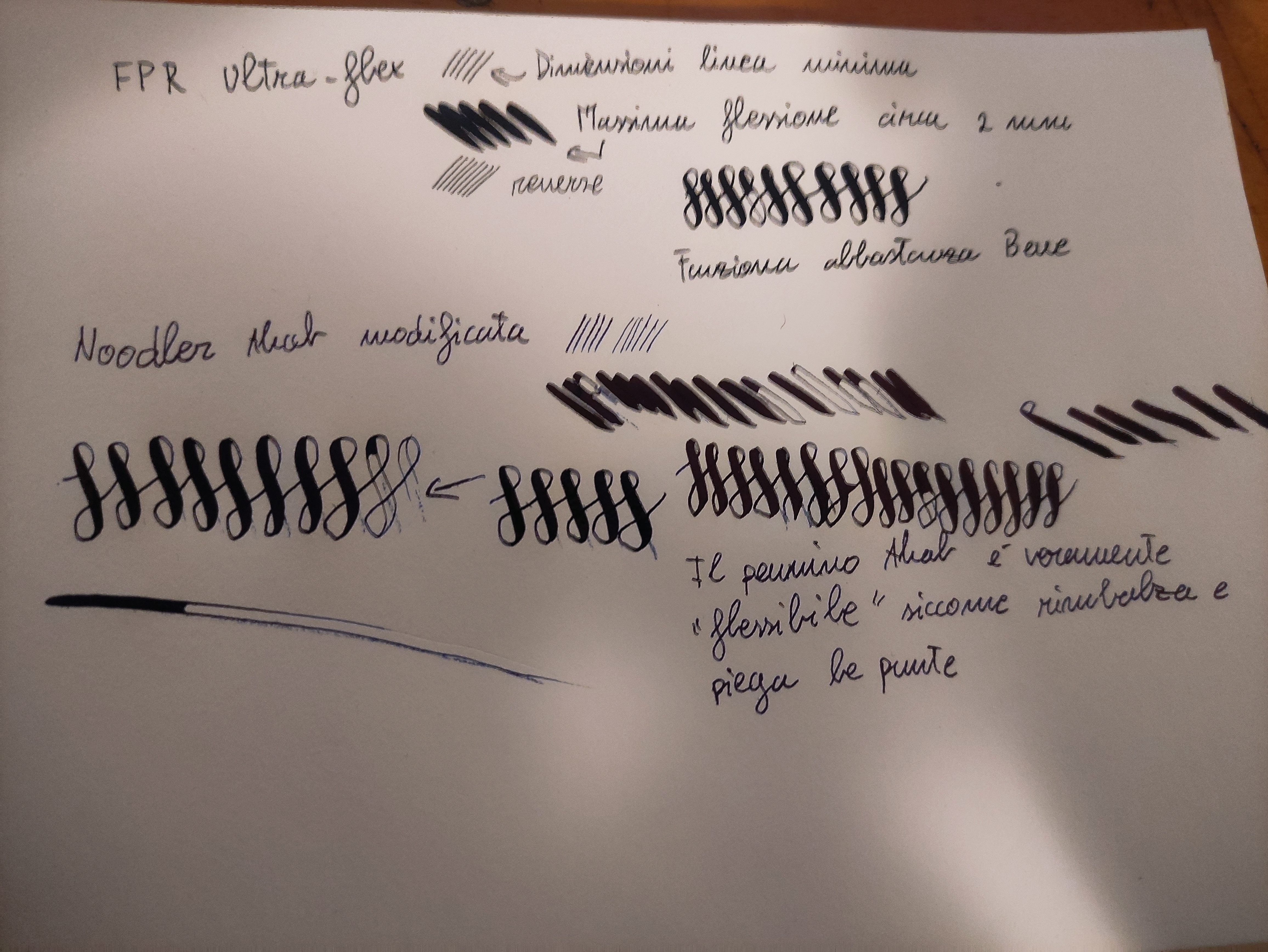 I prennini "semiflessibili" sono ancora meno flessibili della ahab non modificata. Non ho ancora provato l'fpr ultraflex ma sembra ben più rigido della ahab che ho modificato. Proverò il pennino più tardi.