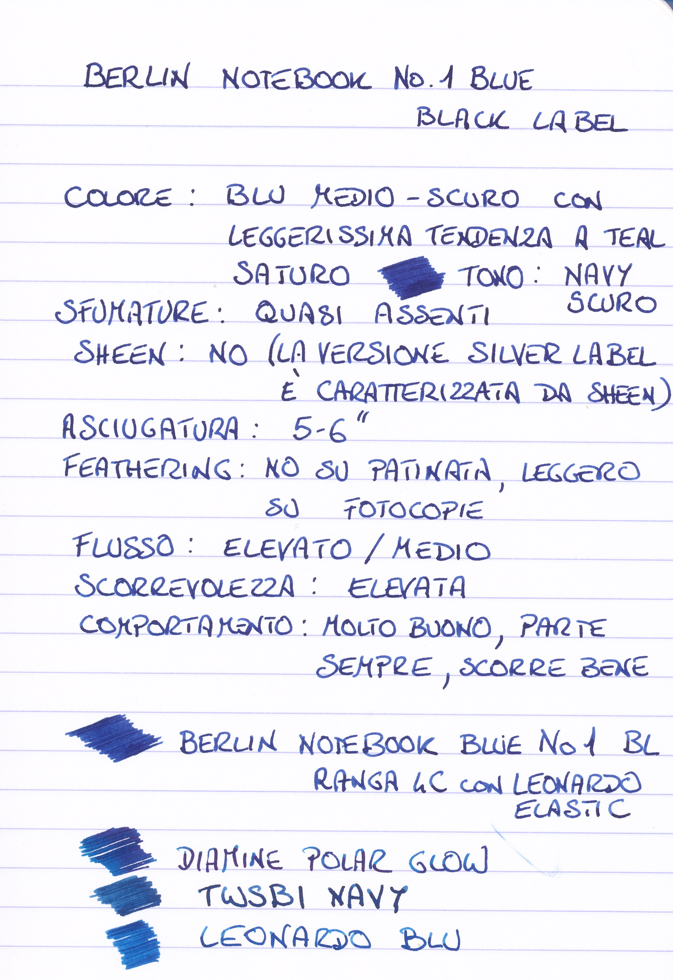 Si è proprio così. Il Berlin Notebook N1 "normale" è molto bello, purtroppo l'ho quasi finito, travasato in un flaconcino più piccolo e quindi perso nel casino totale degli altri inchiostri. Appena mi capitano acquisti dalla ben nota tedesca conto di ricomprarlo, anche perchè mi incuriosisce molto l'ultimo uscito Berlin Notebook Fox N.6.