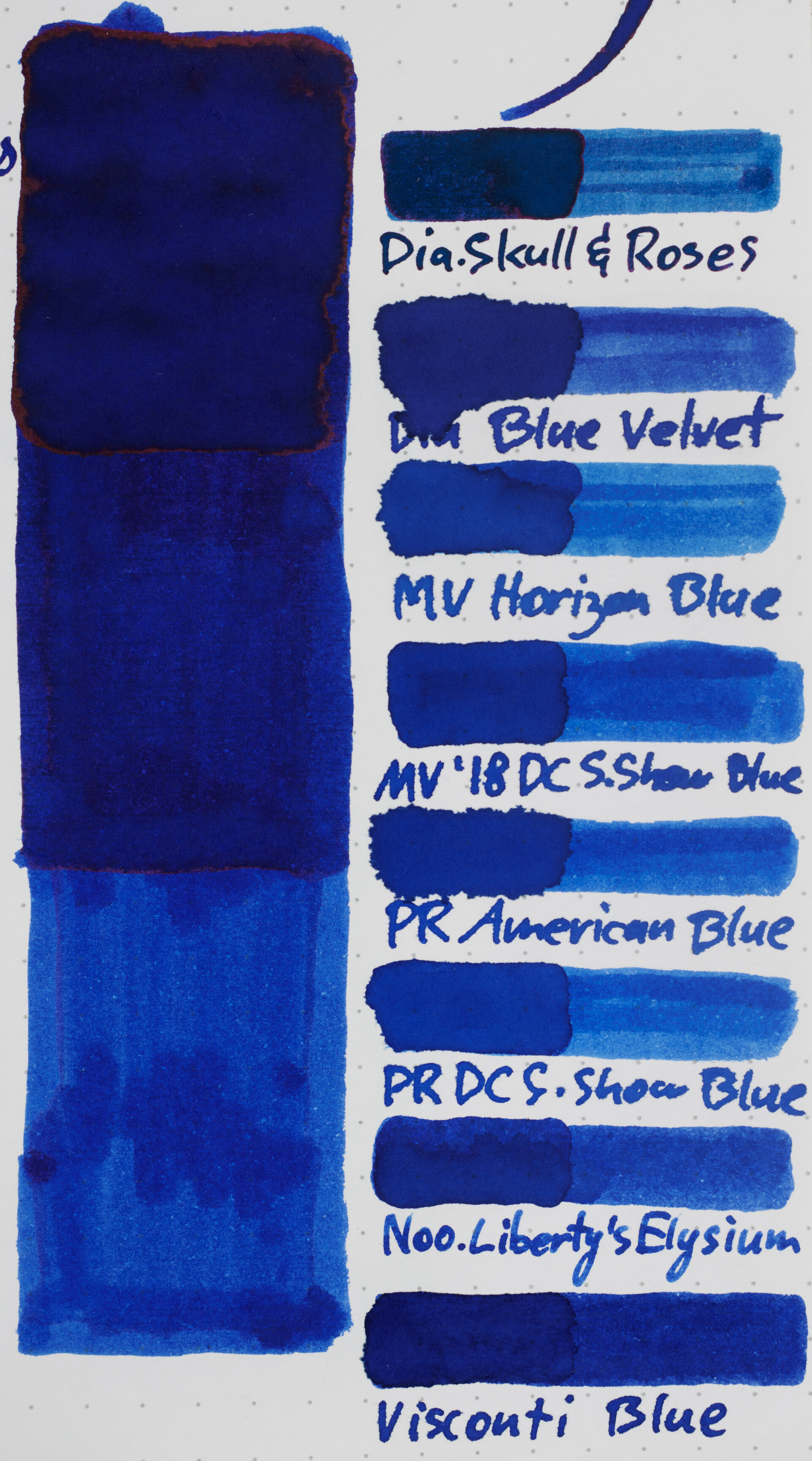 A giudicare da questa prova, realizzata da "Macchiato Man" – la tinta più simile al Visconti Blu sembrerebbe quella del Noodler Liberty's Elysium.
