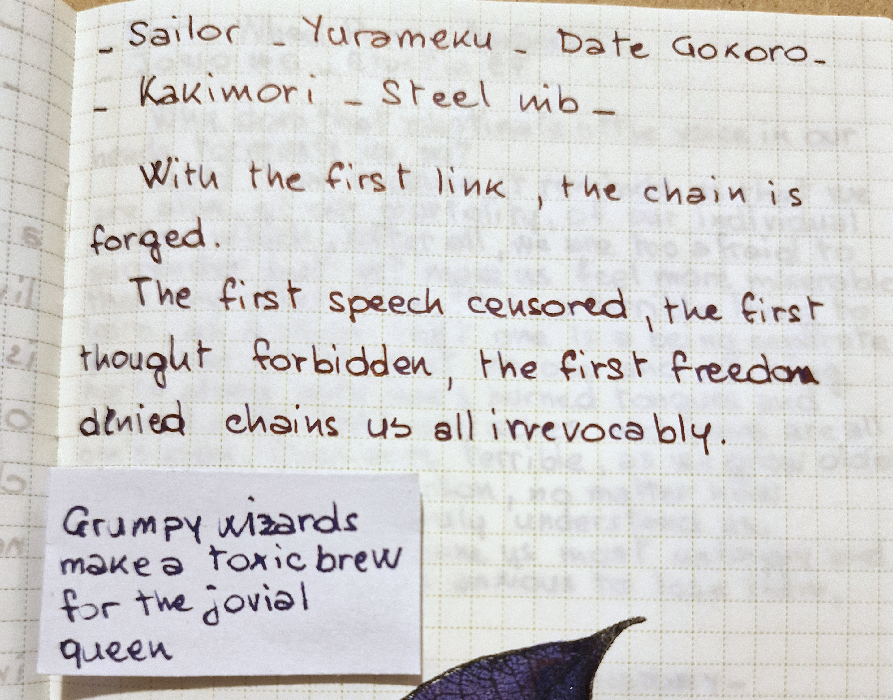 Il pennino usato è il Kakimori in acciaio a meno che diversamente specificato.