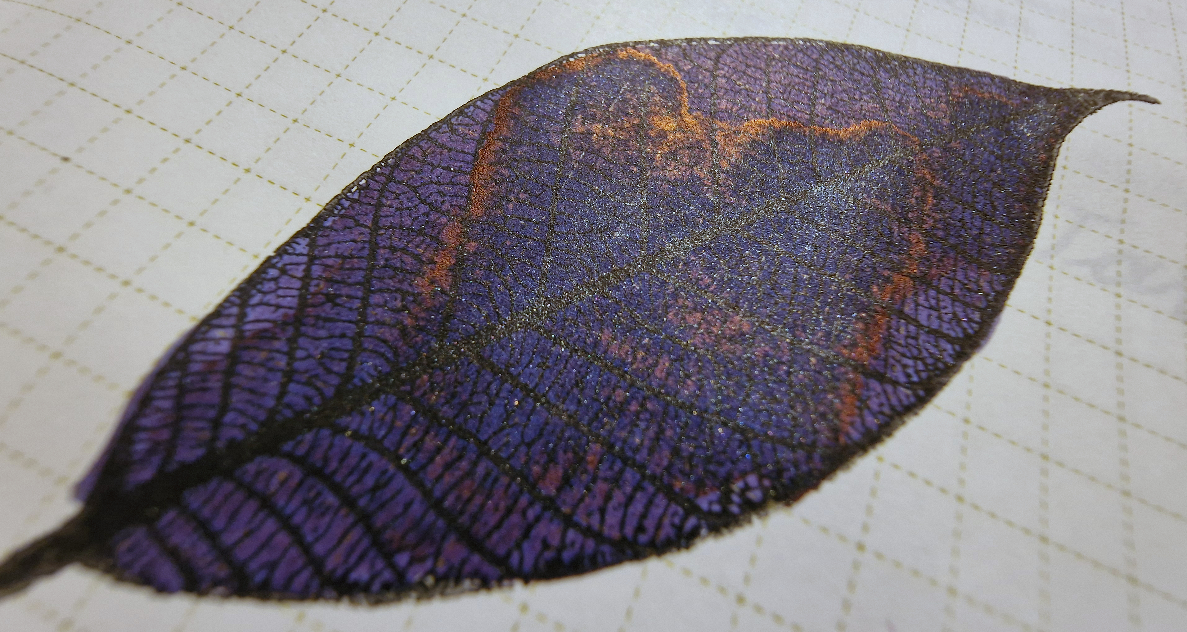 The color changes depending on the length of time and the paper. A mysterious ink that shows glimpses of different colors in shades and streaks.
