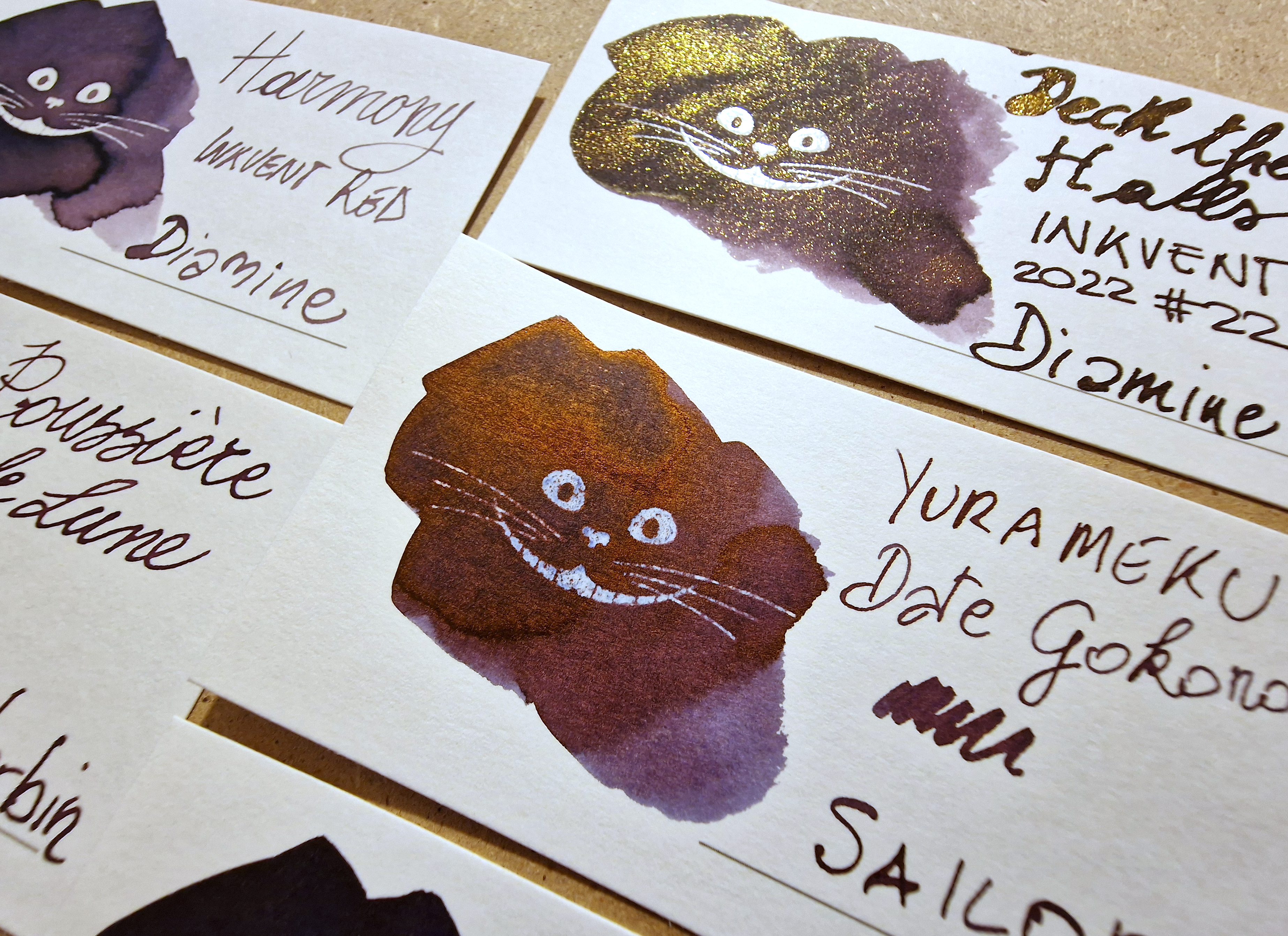 A chi consiglio Date Gokoro: a chi ama avere un tocco di imprevedibilità quando usa un inchiostro. A seconda della carta su cui lo si stende, il risultato può essere differente. A chi ama gli inchiostri sheening ma odia appoggiarci sopra un dito 10 minuti dopo scoprendo che, ancora, non sono davvero asciutti: questo asciuga come un normale inchiostro.