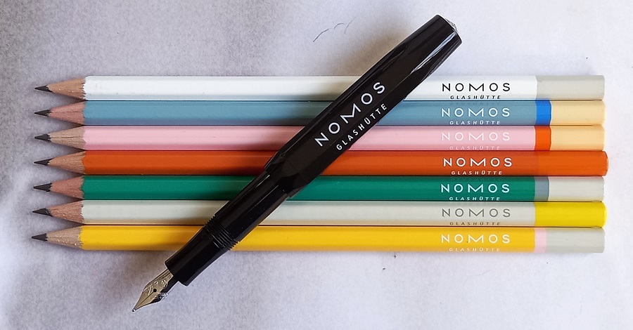 Normale produzione di penne stilografiche Kaweco, ma con il marchio Nomos stampato sulla parte superiore.