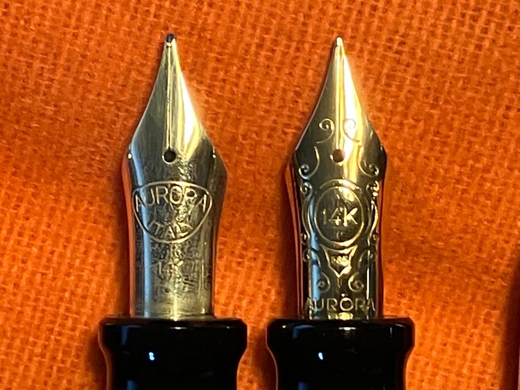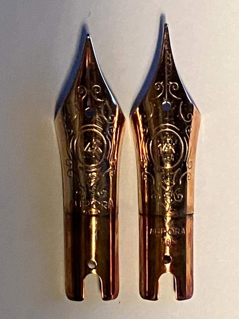Vi ringrazio e mi complimento con voi, effettivamente, ora ricordo, il " risultato" attuale deriva dall'intervento di Aurora sulla mia Optima originale che gli è stata inviata in quanto si stava decomponendo ( ho sempre pensato che mi avvessero inviata un'altra stilo "completa" ma, a quanto sembra, devono aver utilizzato il pennino montato sulla mia ....chissà il gruppo pistone se è stato anch'esso recuperato).... devo dire che mi piaceva di più ( autodistruzione a parte ...il che non è poco) il materiale della prima. Comunque ho appurato che trattasi di rebbi ...standard