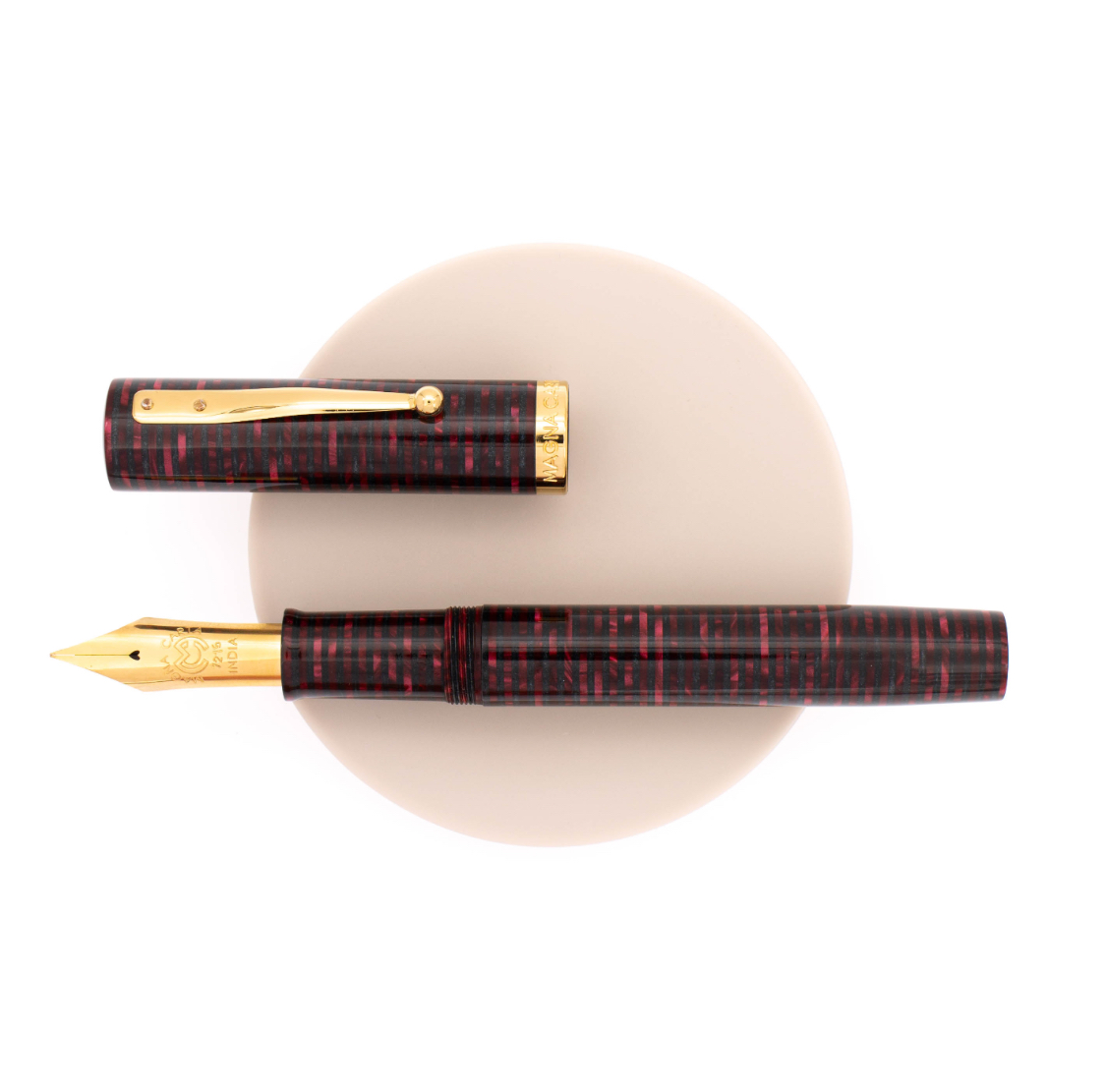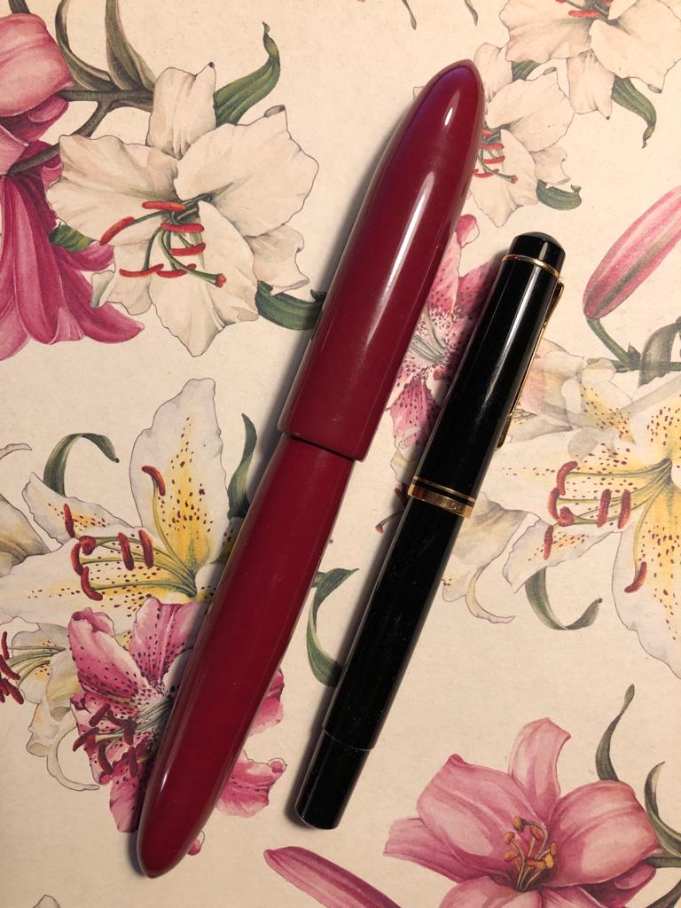 Trovo il pennino ( pennone) sproporzionato rispetto al fusto della penna, il prezzo poi e' fuori di testa per un pennino indiano e placcato oro. La resina anellata si rifà ai vecchi modelli vacumatic, sempre soggetti allo scopiazzamento, uno in più non fará di peggio.
