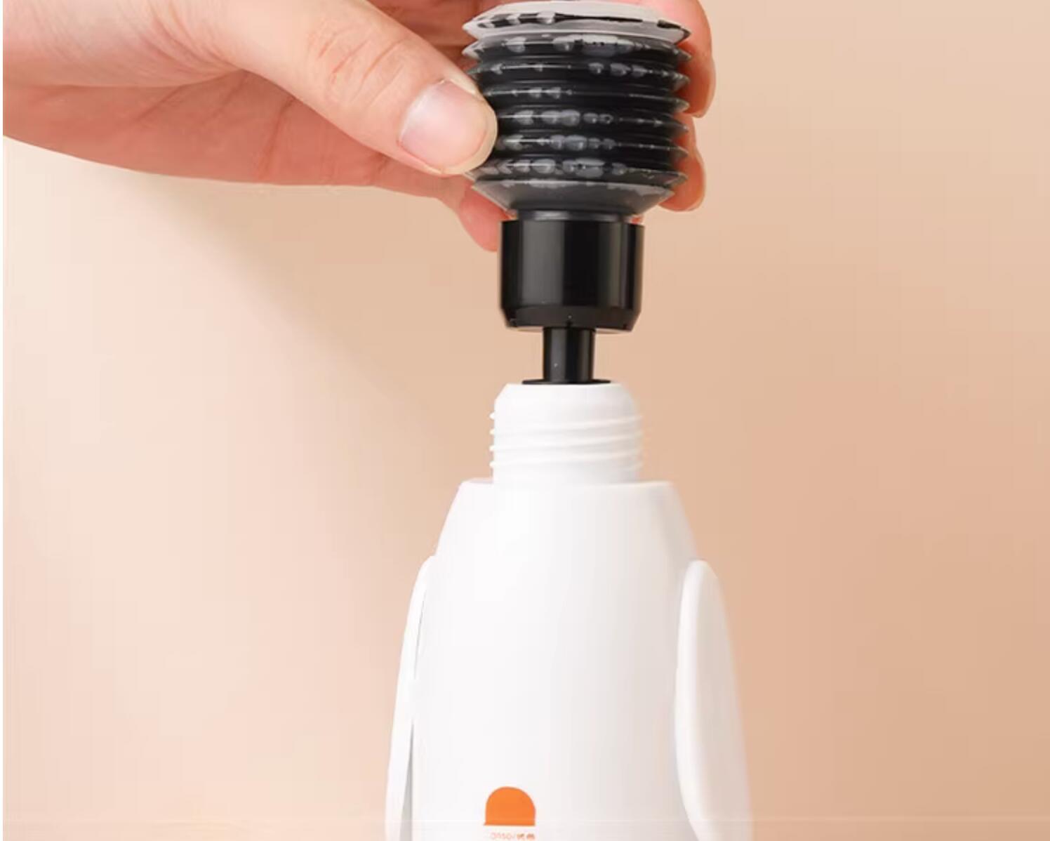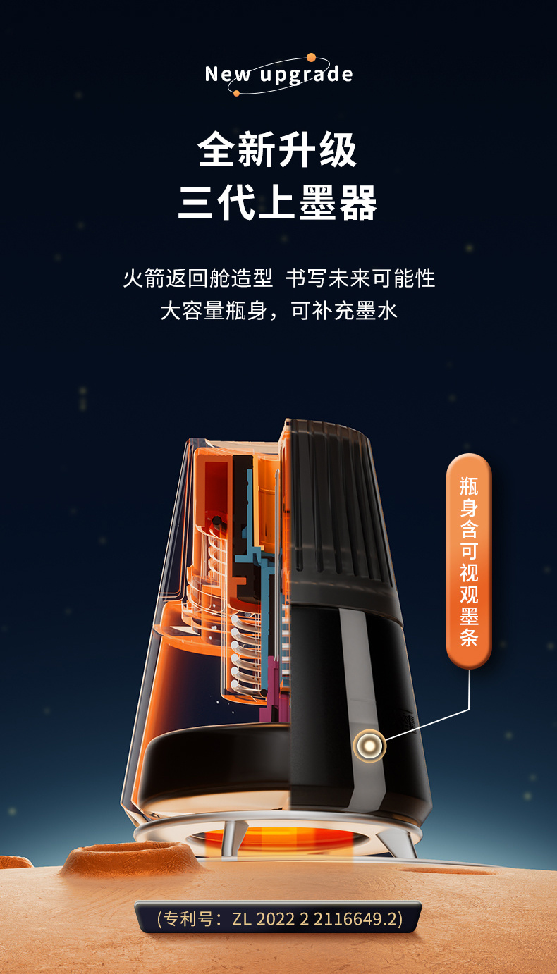 Non riesco a trovare il brevetto per il sistema da applicare alle boccette, ma riguardando i video credo proprio che il sistema di aspirazione vero e proprio sia lì, e che poi l'inchiostro venga "sparato" a pressione nella penna.