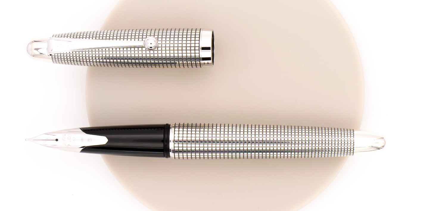 Nessun doppione stilistico. Nota come i quadretti della Silvern si assottiglino agli apici. Anche io temevo la copia con la Parker 75. Stile a parte, un pennino di altro pianeta.