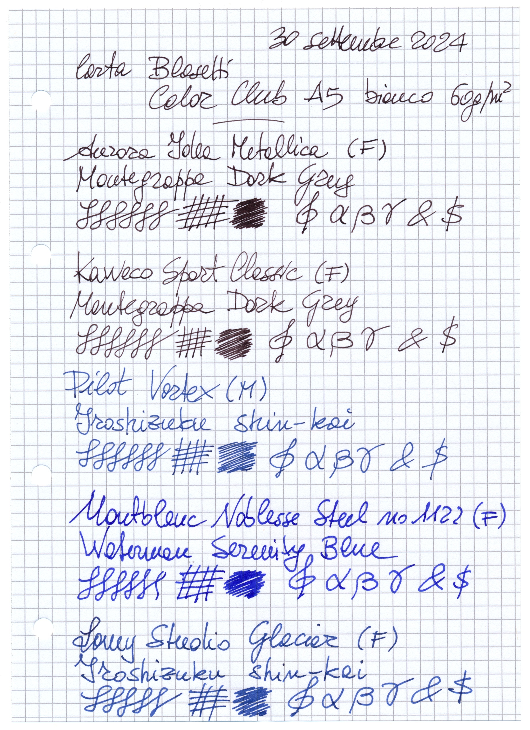La mia MB Noblesse è la prima versione, pennino in acciaio, fine. La usavo con le cartucce Pelikan 4001 Roya Blue, con cui va a meraviglia. Va bene anche con il Waterman Serenity Blue, devo usarla ancora un po' per giudicare bene, ma per ora l'abbinamento con il 4001 mi sembra meglio.mastrogigino ha scritto: ↑sabato 28 settembre 2024, 15:39 Io ho una Montblanc Noblesse con pennino F a 18k, col Waterman Serenity Blue è uno spettacolo.