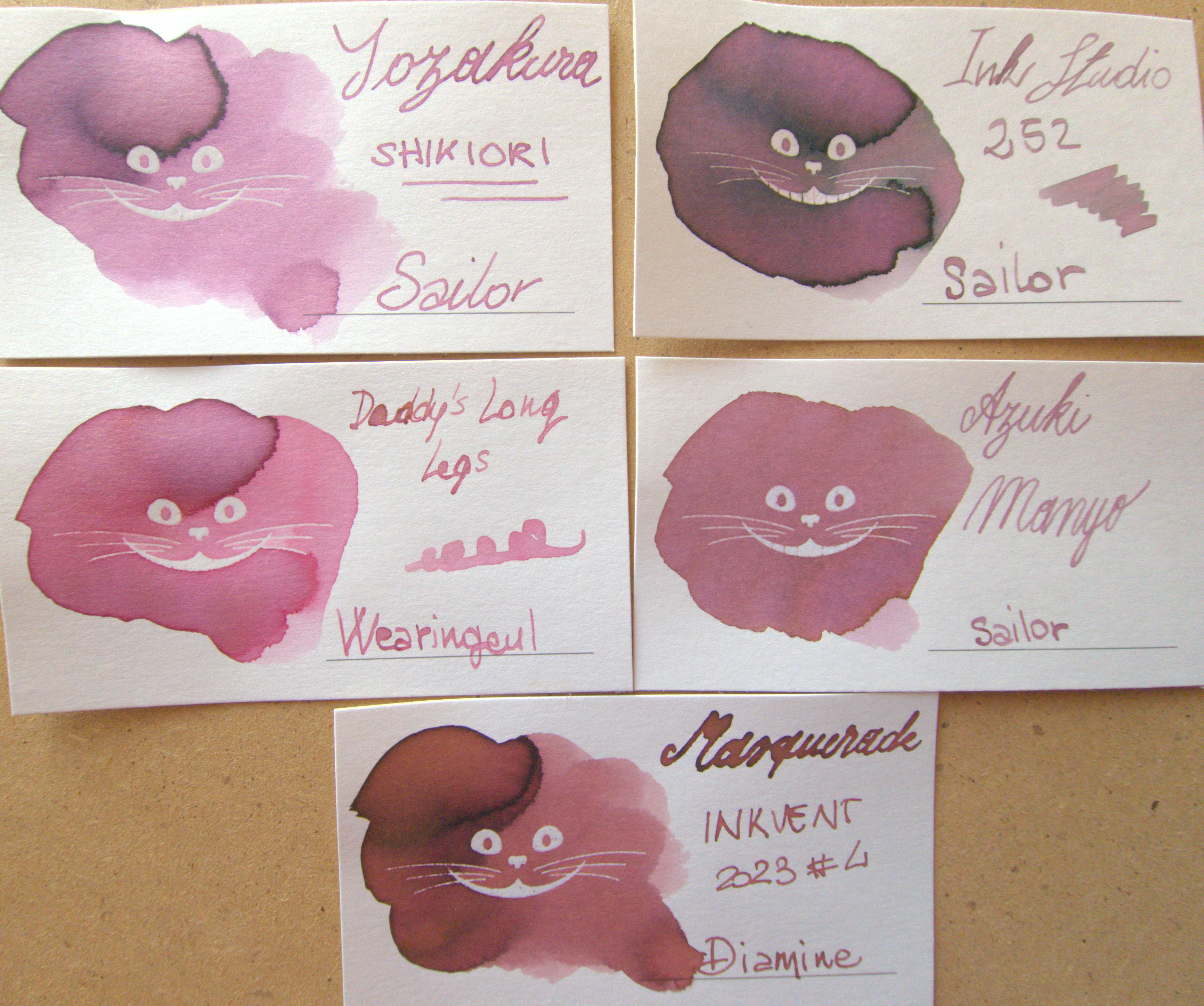 La prima volta in cui l'ho usato ho pensato a Yozakura, della linea Shikiori di Sailor. Poi li ho messi vicini e ho visto che - in realtà - Yozakura è quasi flashante rispetto al 252 e io tendo a considerare Yozakura un colore desaturato (lo è ma molto meno).