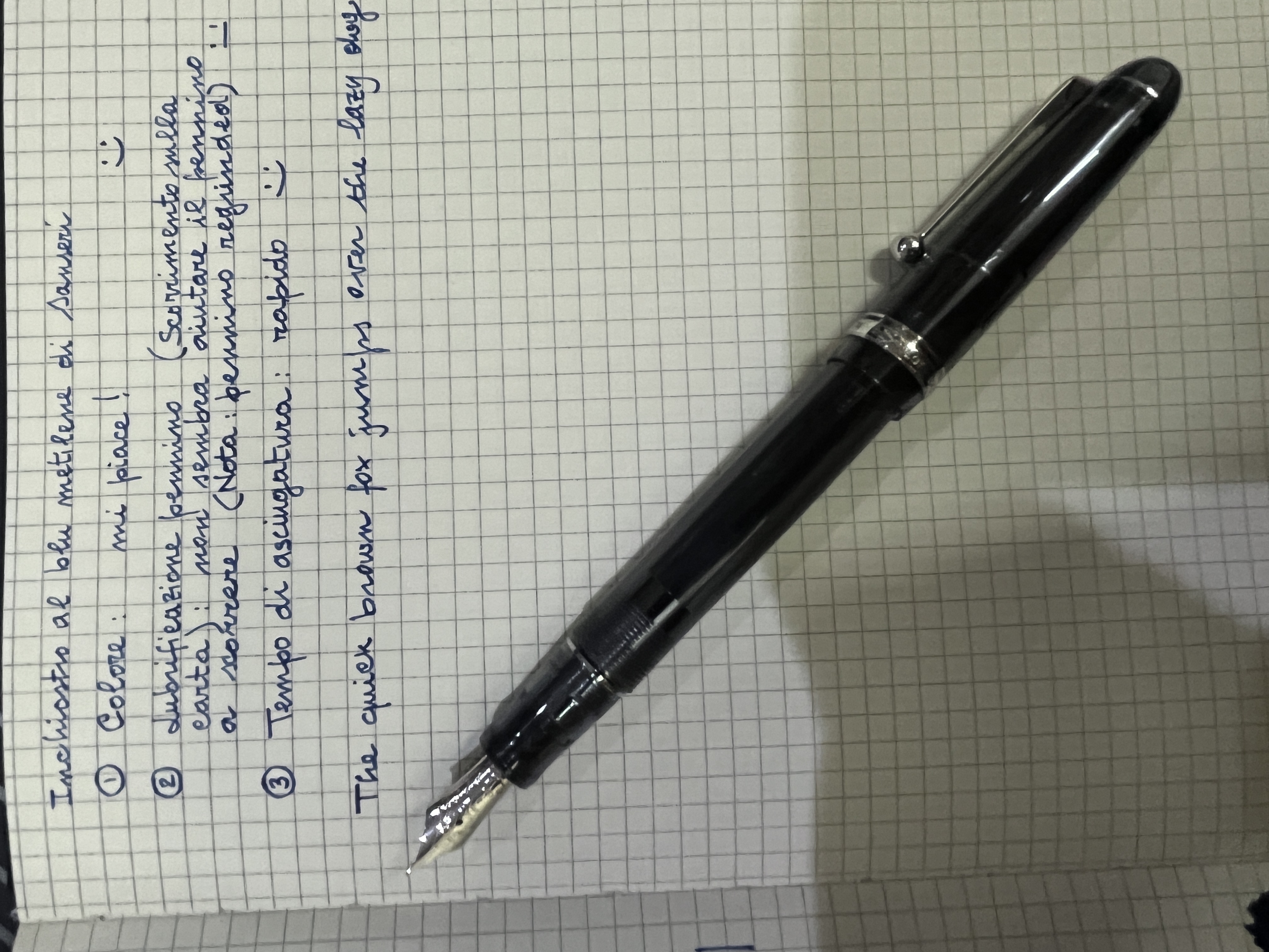 L’unico difetto che gli ho trovato è che mi sembra l’inchiostro lubrifichi poco il pennino (che essendo un regrinded da B ad architect di per se non è certamente scorrevolissimo, anche se con altri inchiostri questo non si nota). Per il resto il colore non è affatto male ed i tempi di asciugatura mi sono sembrati ottimi (non ho fatto misure precise, ma ho semplicemente scritto normalmente e notato che l’inchiostro asciugava bene via via che scrivevo).