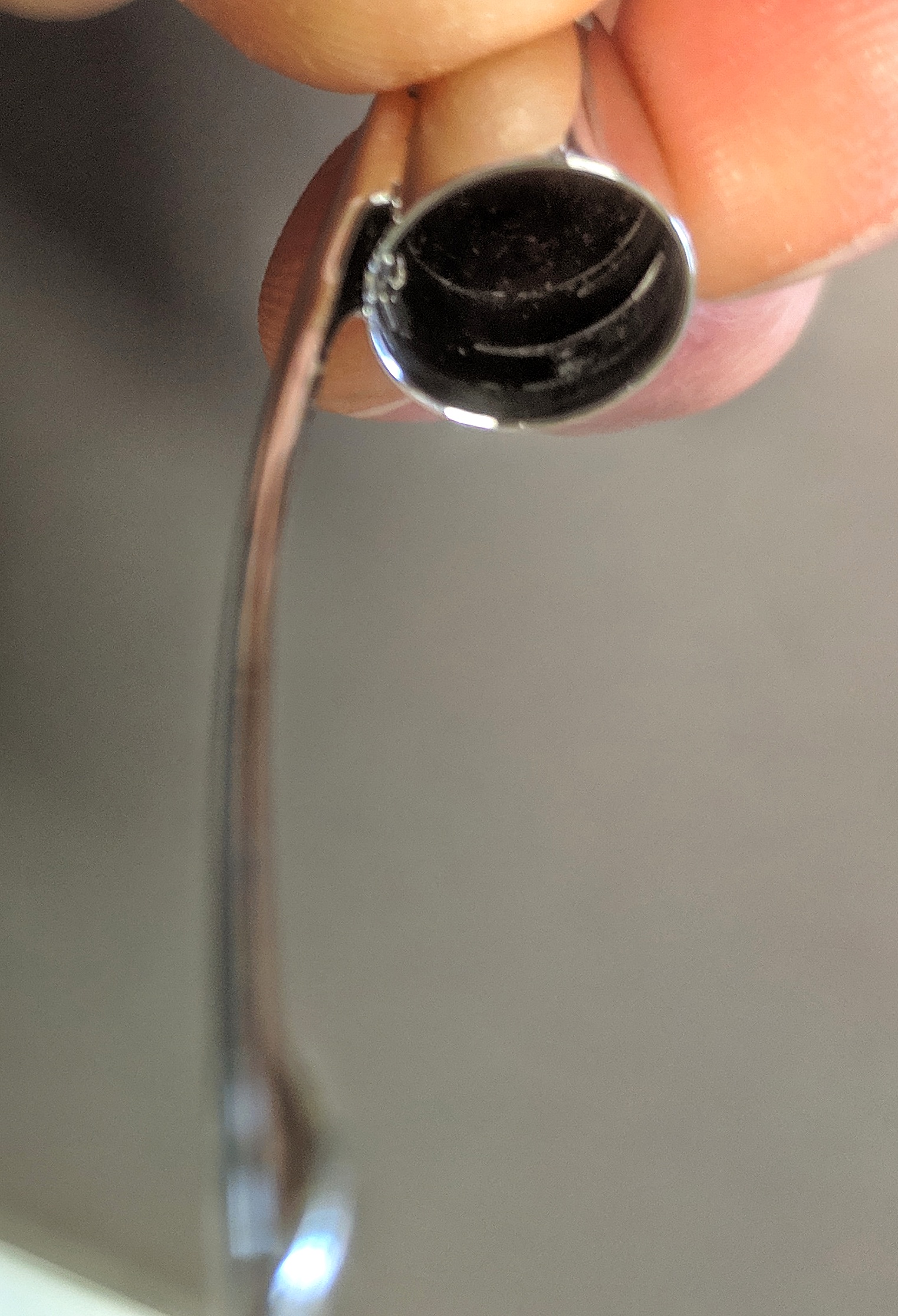 Ho provato a praticare un po' di pressione nel tentativo di ovalizzare leggermente il coperchietto, ma non è la strada risolutiva. Temo inoltre che, viste le forti sollecitazioni in senso obliquo a cui è soggetto questo componente, non ci sia colla adatta a svolgere in modo definitivo la funzione di bloccaggio.