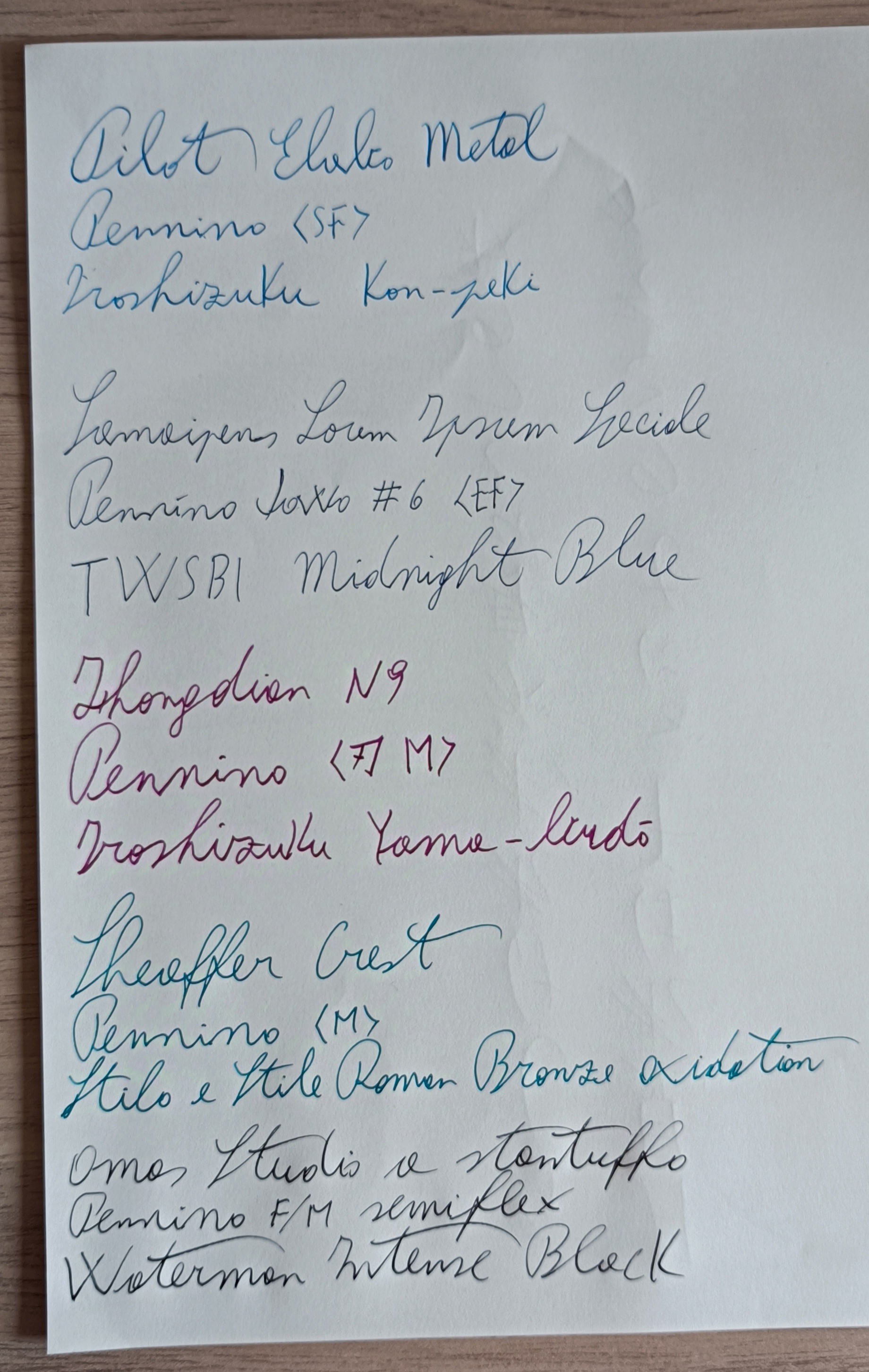 Ecco qualche riga con le mie penne inchiostrate al momento