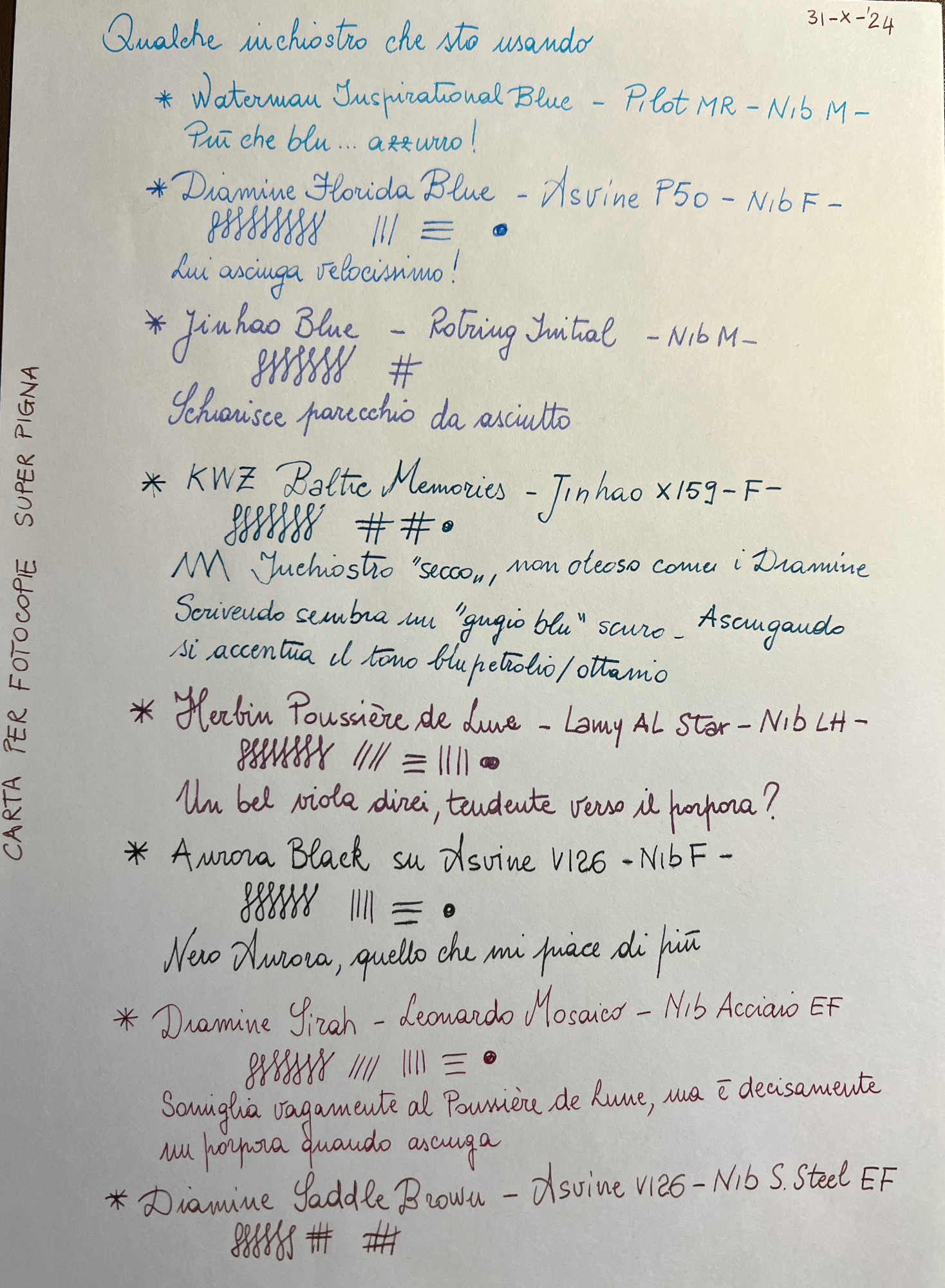 Andre1977 ha scritto: giovedì 31 ottobre 2024, 16:15 Do il mio contributo, con gli inchiostri che sto usando al momento !