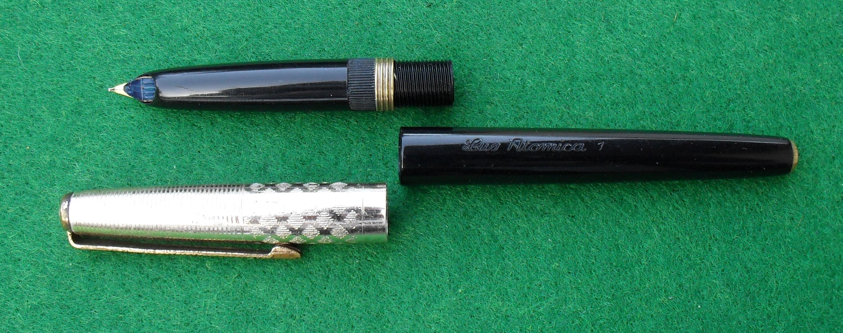 Grazie per l'apprezzamento e per il contributo, fotografico e testuale, molto interessante. Il link mi ha consentito di datare nel 1956 la registrazione del marchio Atomica, il che tende a confermare che la stilografica a cartuccia di Lus sia giunta dopo l'Aurora Duo Cart.