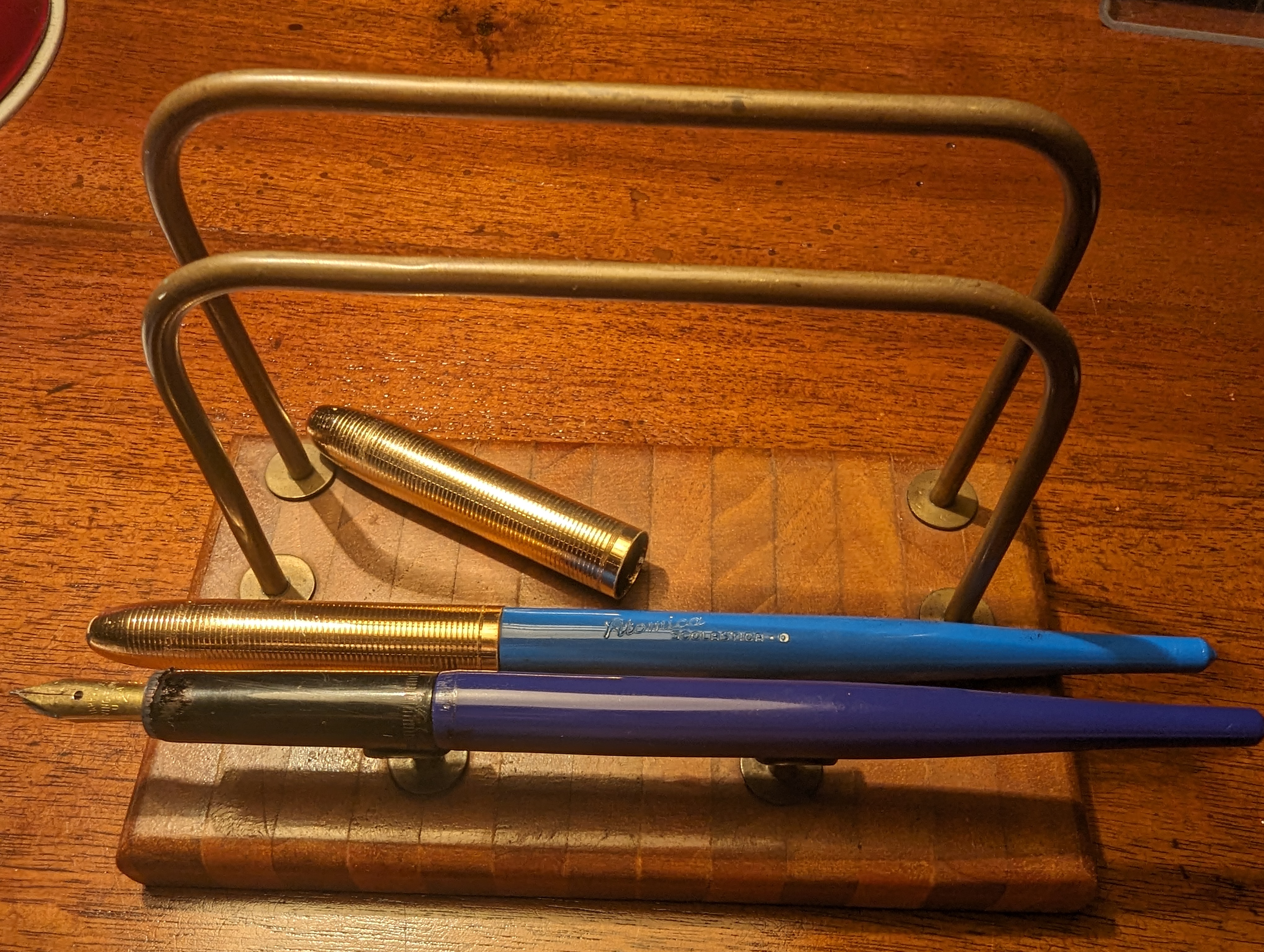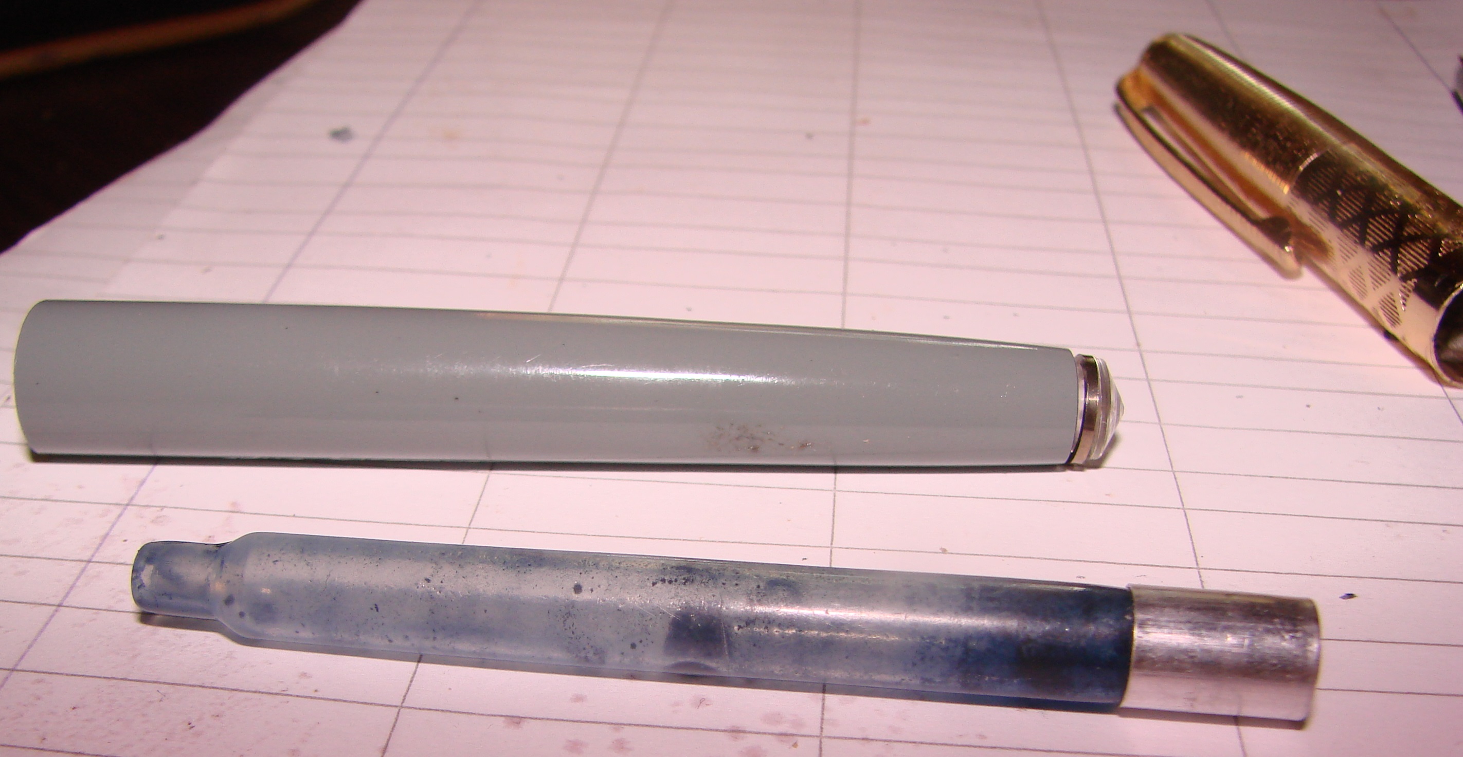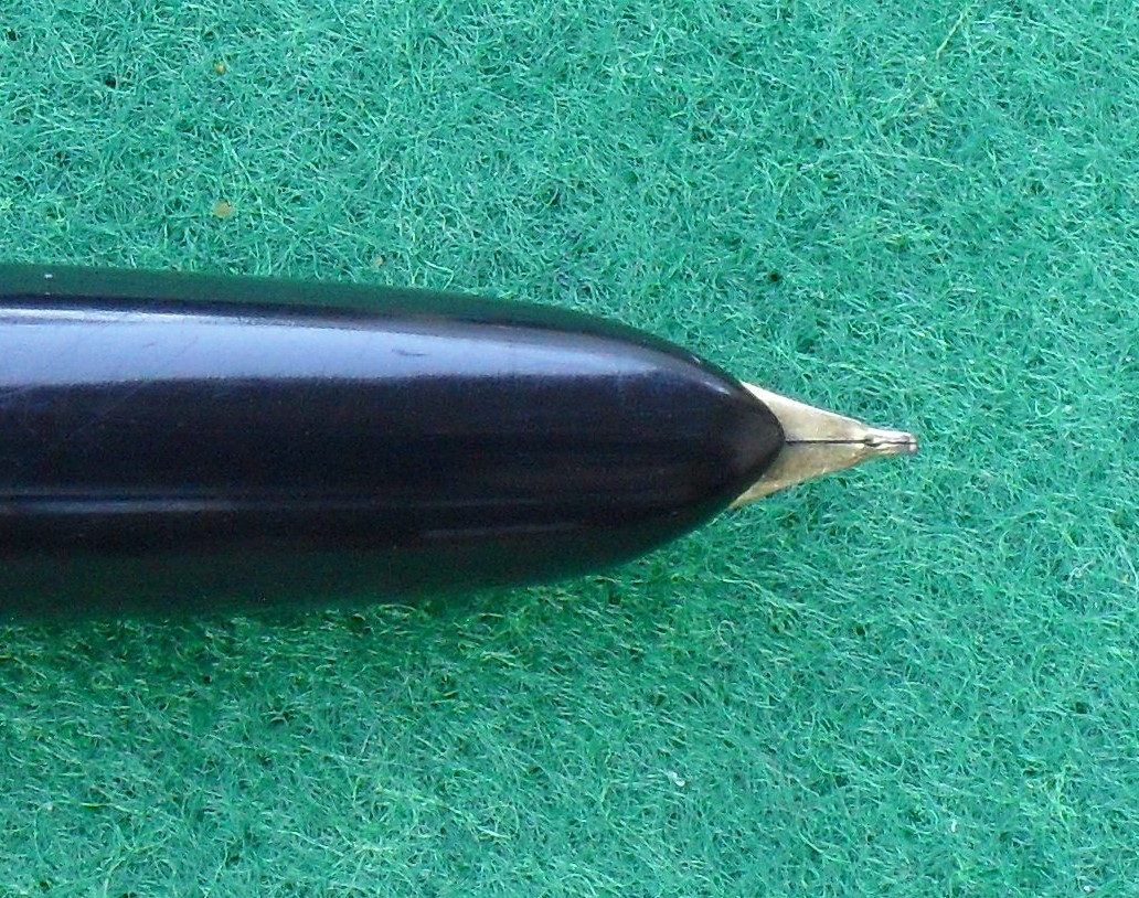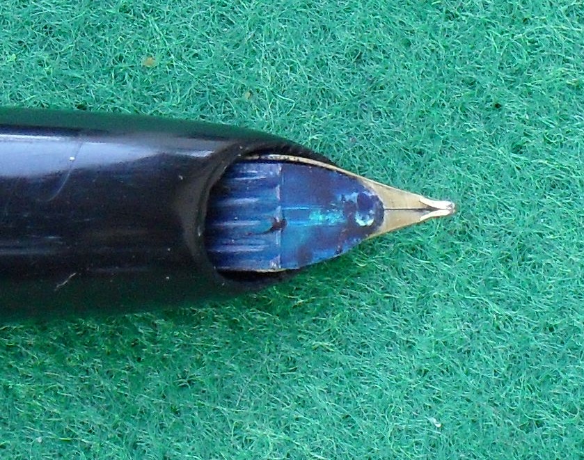 - il primo riguarda il gruppo di scrittura, che offriva un pennino d’acciaio dorato senza materiale di riporto in punta. Nonostante sia rimasto incrostato d’inchiostro per lungo tempo, una volta sciacquato il pennino è tornato ad esibire la sua bella doratura.