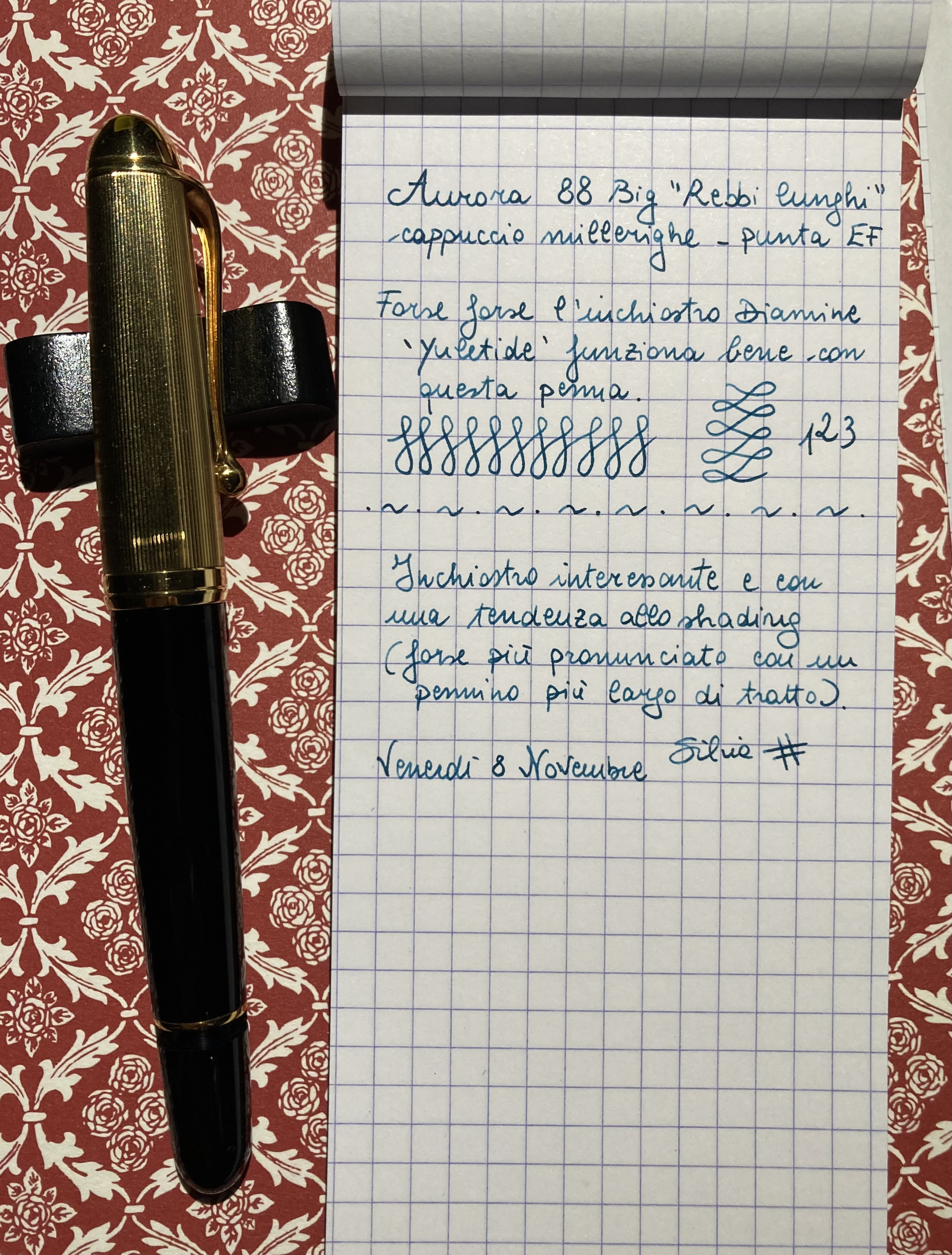 Proverò altri inchiostri in arrivo (dei Berlin Notebook) ma nel frattempo se ti piace il colore di Diamine ‘Yuletide’ ti avviso se può essere utile che è molto simile a Stilo&Stile ‘Roman bronze oxydation’. Il primo è un filo più scorrevole