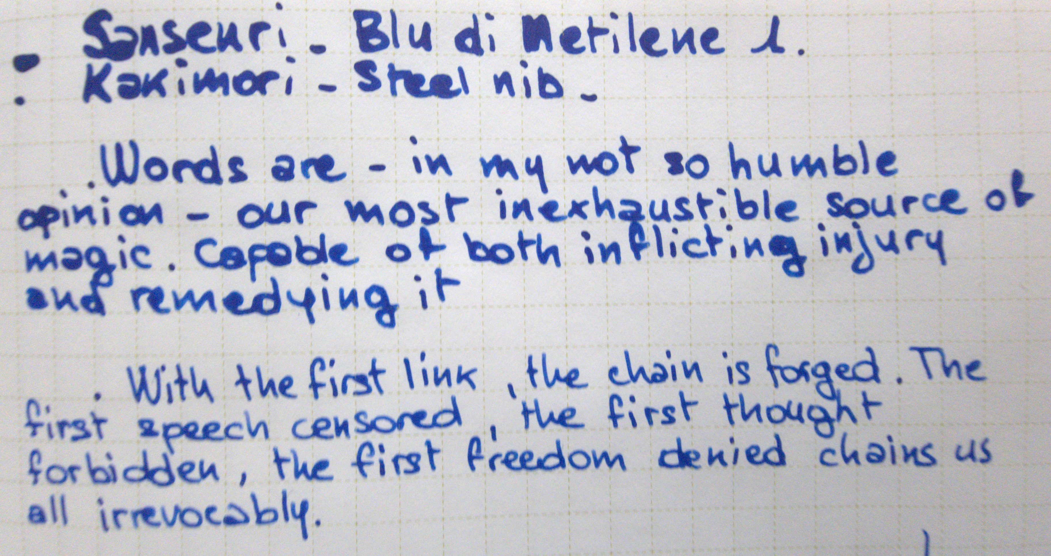 Il pennino usato è il Kakimori in acciaio a meno che diversamente specificato.