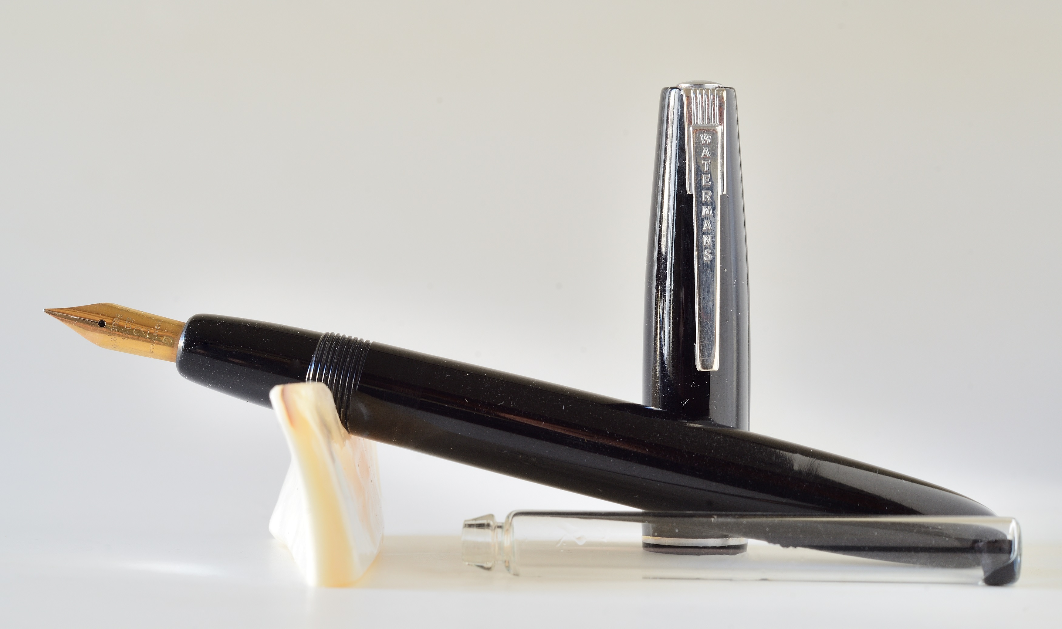Confermo, si tratta di una Waterman's JiF, ma il cappuccio é di un altro modello. O meglio, può essere originale e relativo ad un'esemplare della produzione più recente (metà anni 50?). Waterman's come noto ha prodotto moltissimi modelli e varianti, difficile riuscire a catalogarli tutti!