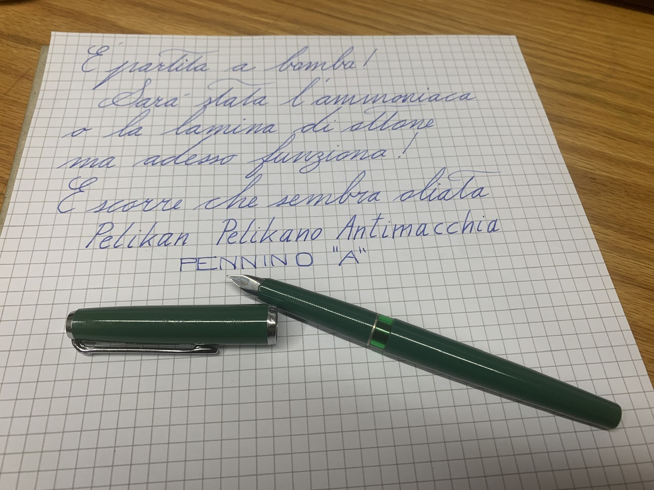 Prima di rimettere la penna a mollo con acqua e ammoniaca mi sono detto : "beh, ho pulito il pennino,ho pulito il condotto, proviamo di nuovo con l'inchiostro, tanto la devo lavare di nuovo.."