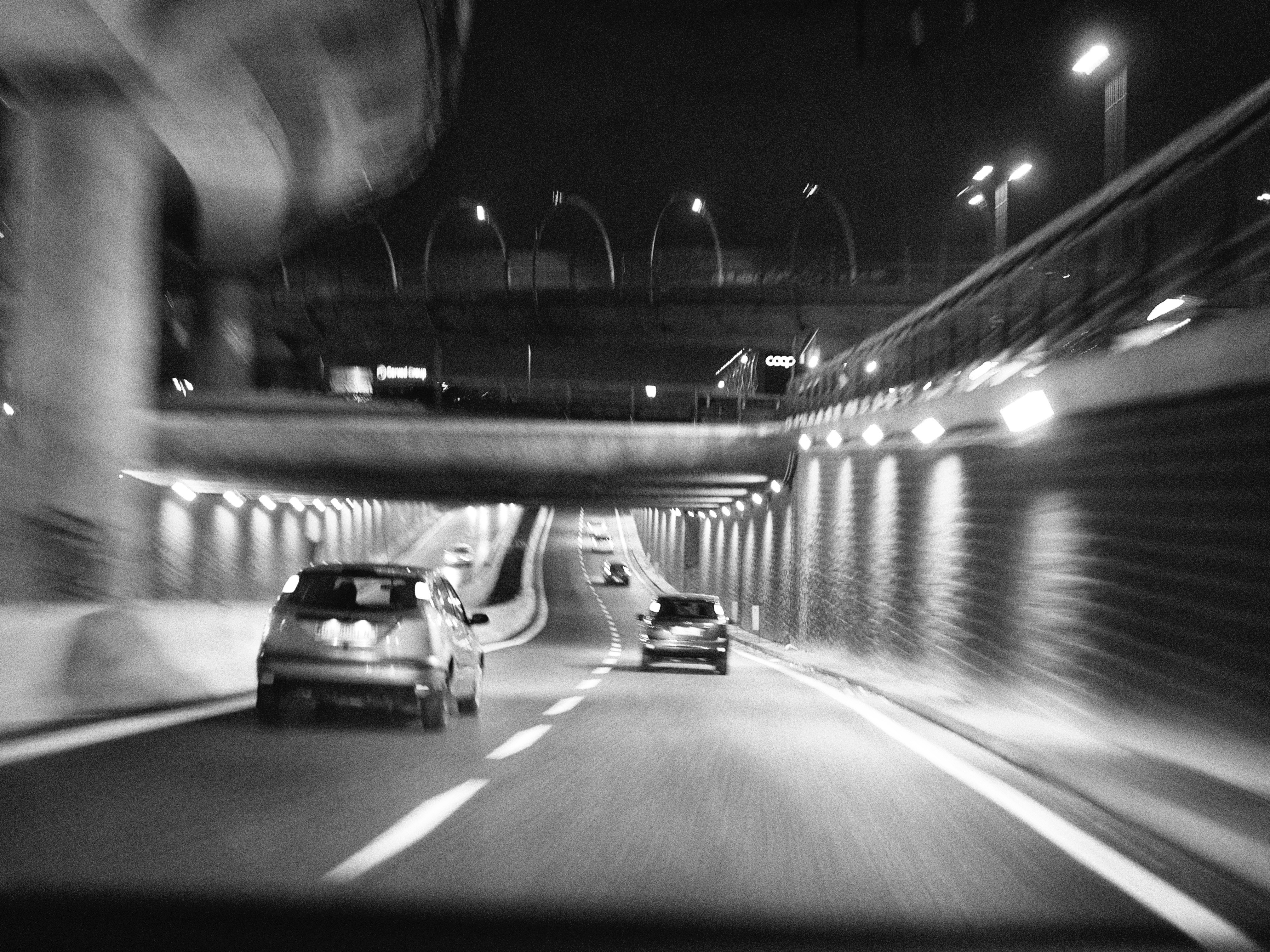 Forse io l'avrei forzata in un tempo lento, in quel caso che importa del mosso, io avrei tentato di ottenere delle belle strisce di luce ai lati, che danno l'idea del tunnel che scorre. Credo anche che l'avrei lasciata a colori, per avere le luci gialle del tunnel e rosse dei fari posteriori dell'auto. E' la tipica foto da riprovare quando ricapita (e guida qualcun altro, mi raccomando!).
