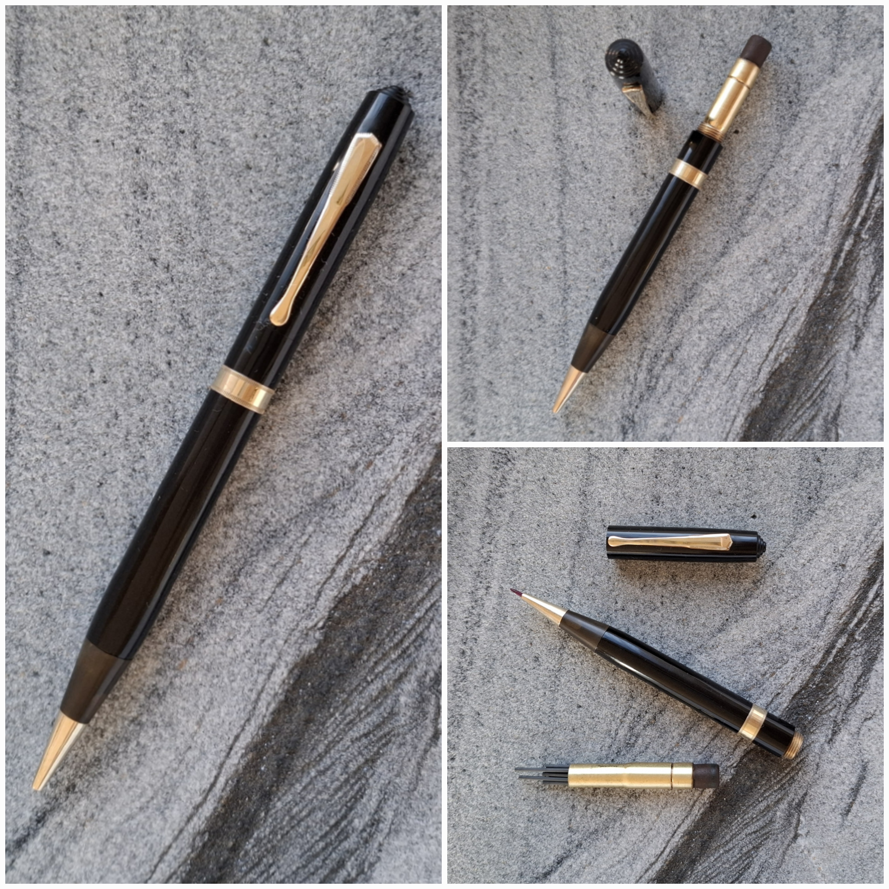 Se la matita è già carica, la mina può essere estratta (funzione PROPEL) ruotando in senso antiorario la sezione in ebanite che si trova a ridosso del nose-cone (puntale a cono) in metallo laminato oro.