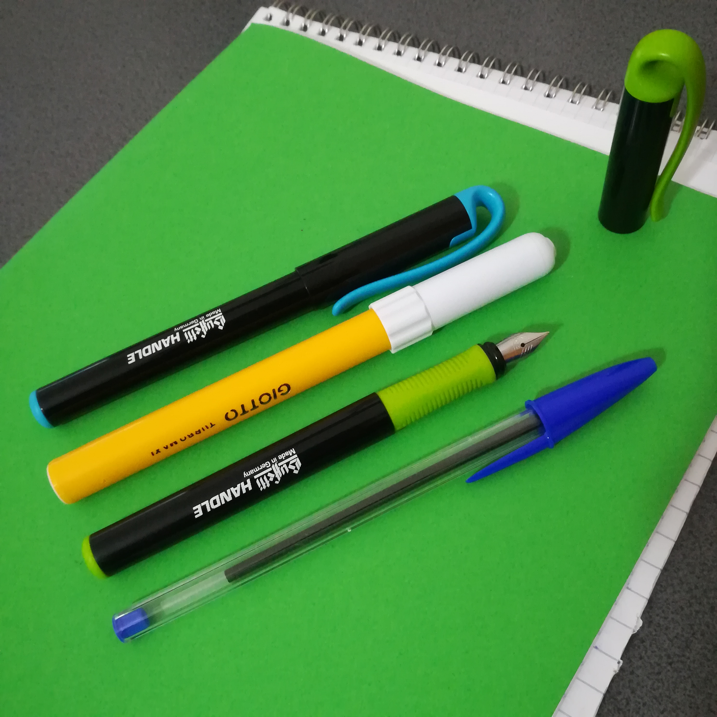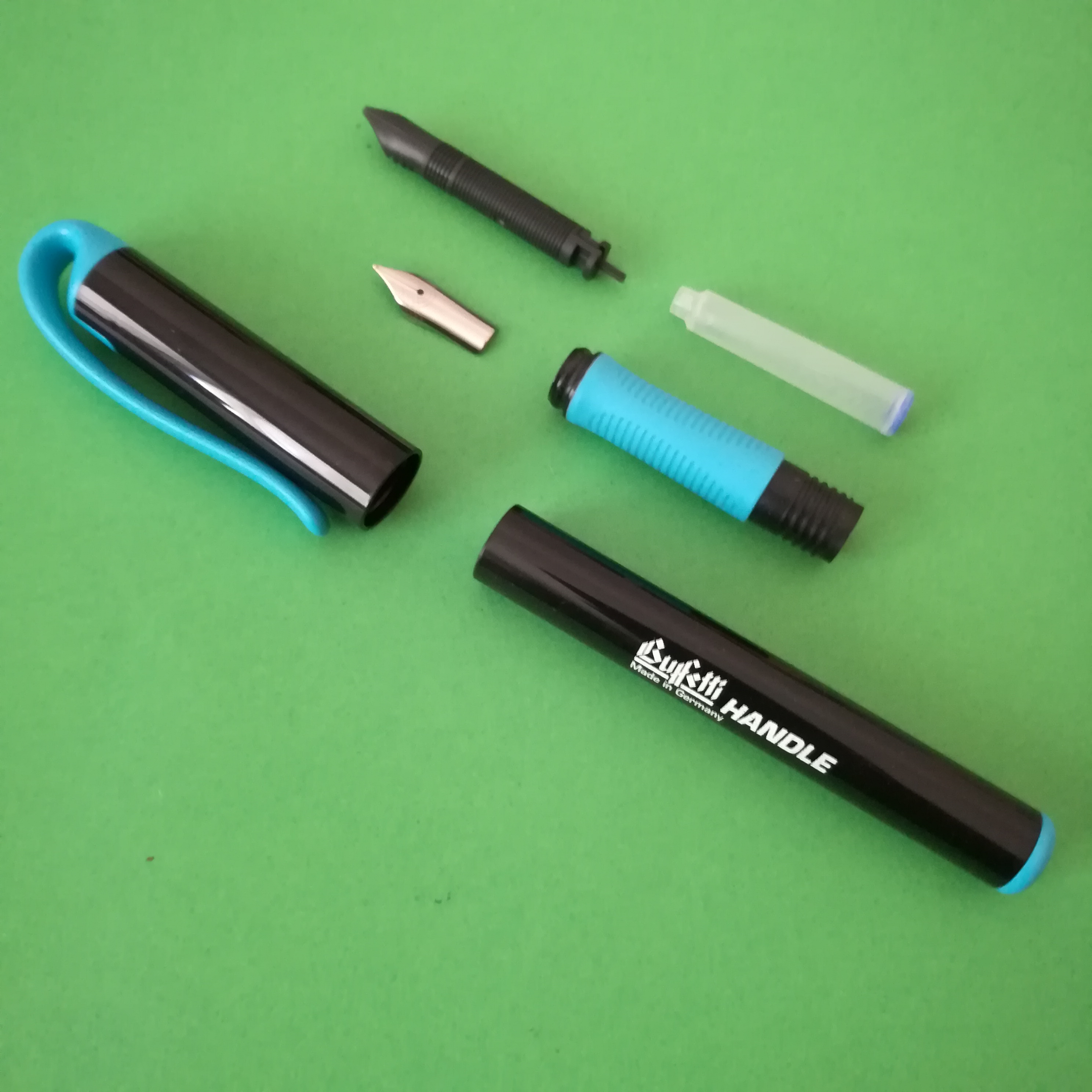Penna che nasce da plastiche e pennini in acciaio di Schneider, solo che la "vera tedesca" che ho avuto (difettosa), letteralmente non scriveva, alla Handle invece è bastato inserire la cartuccia contare fino a 10 ed iniziare a scrivere.