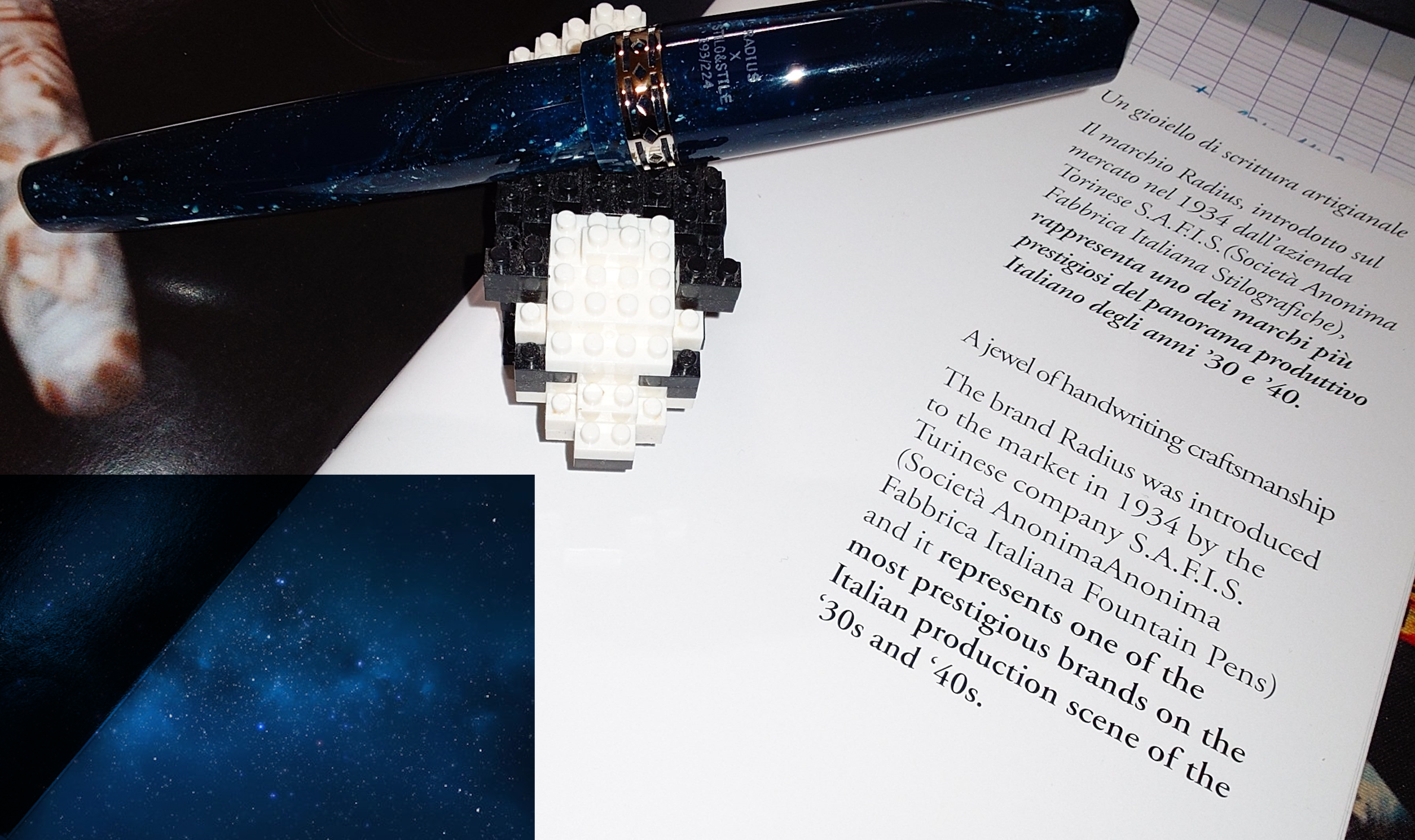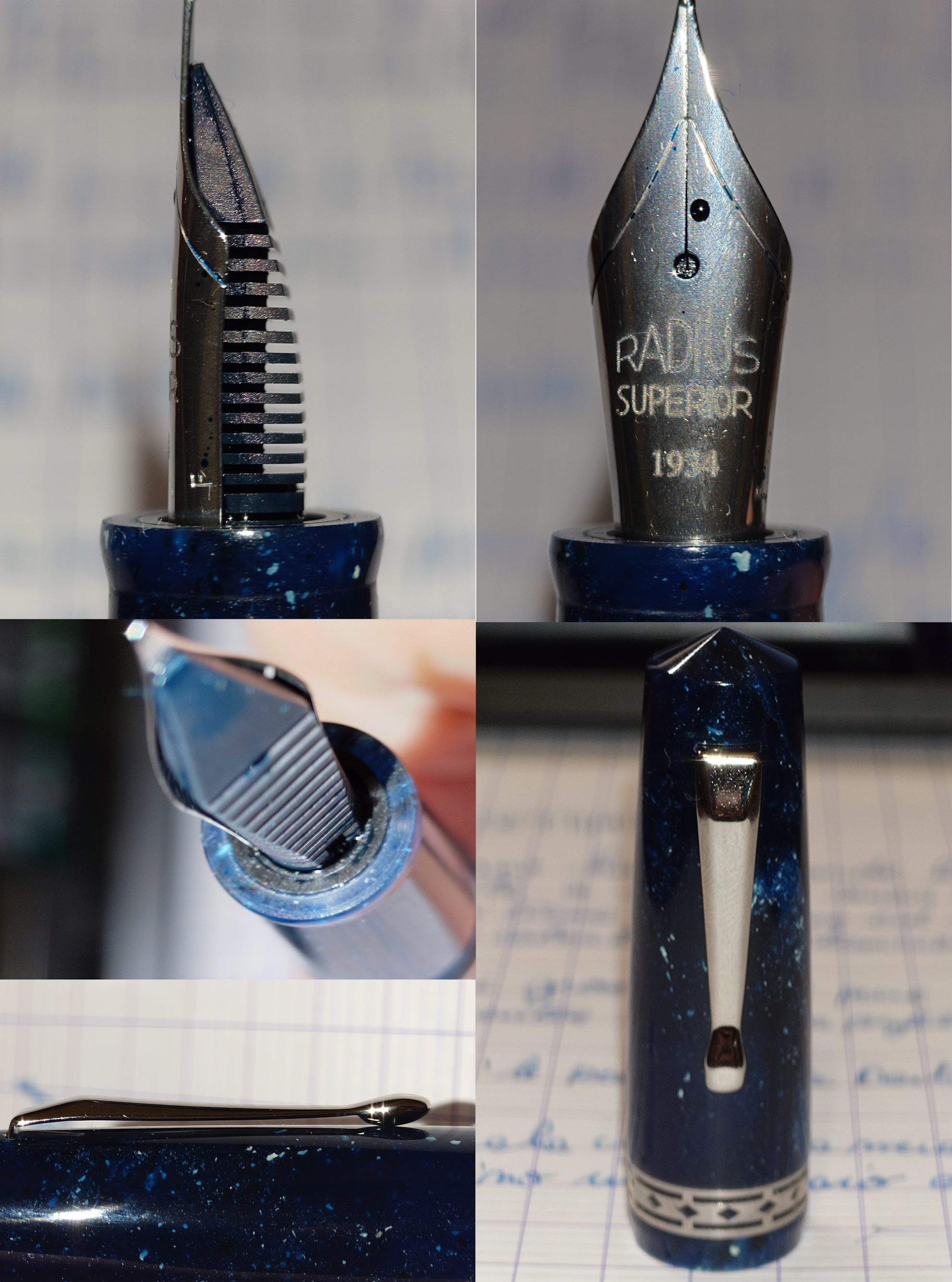 Vi è inciso a laser la dicitura "Radius Superior 1934", mentre la dimensione del pennino si trova sul lato destro del pennino, sulla ripiegatura. Personalmente non è un design che mi piace, troppo semplice, e insignificante per chi entra per la prima volta a contatto con il marchio. Preferirei piuttosto un motivo geometrico, come quelli sul cappuccio.