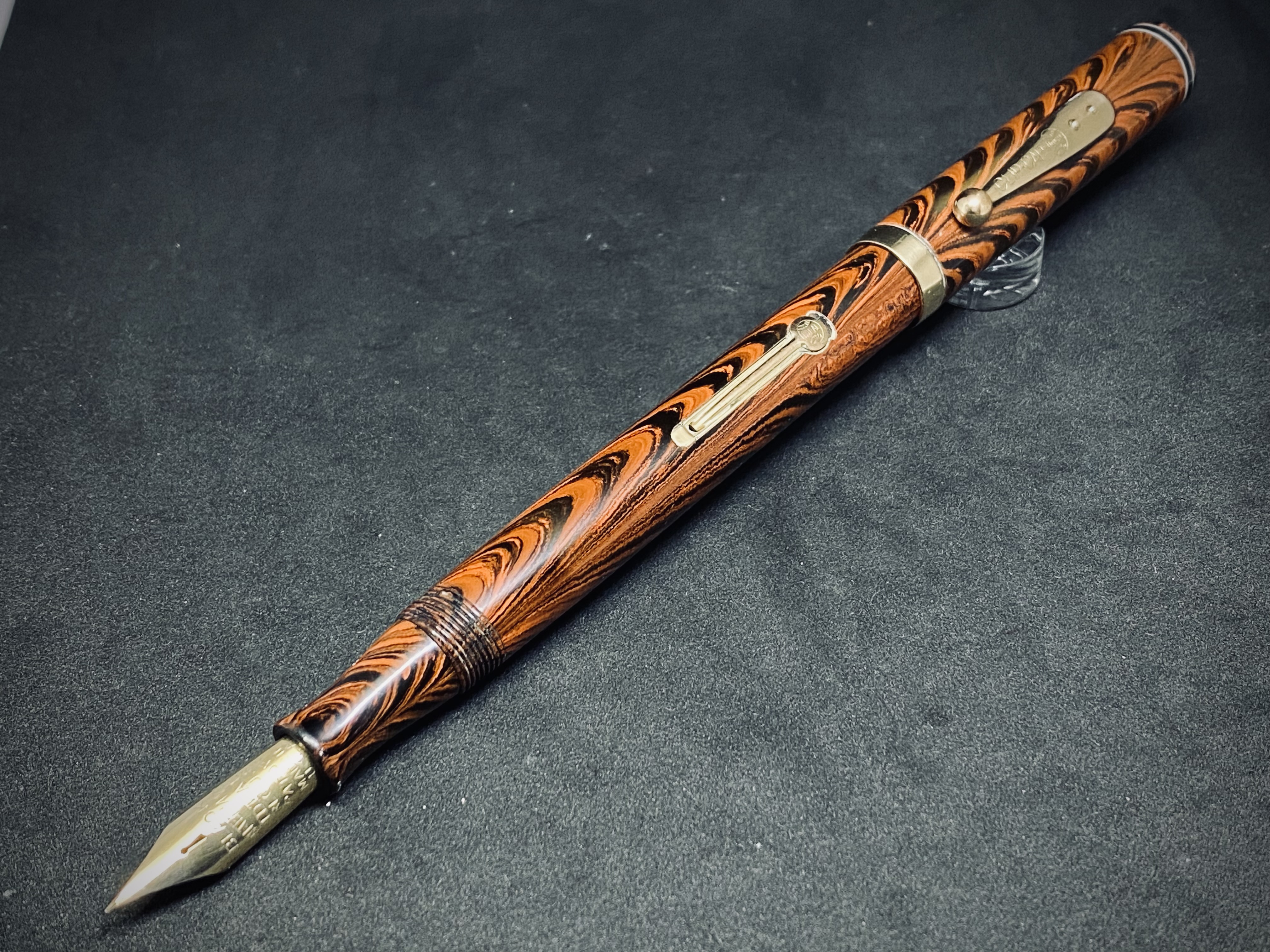 Su questo specifico esemplare il pennino è uno dei classici e famigerati pennini Waterman flessibili senza se e senza ma. Flette senza mai dare segni di cedimento con un alimentatore, a sua volta in ebanite rossa, che garantisce sempre un buon afflusso di inchiostro.