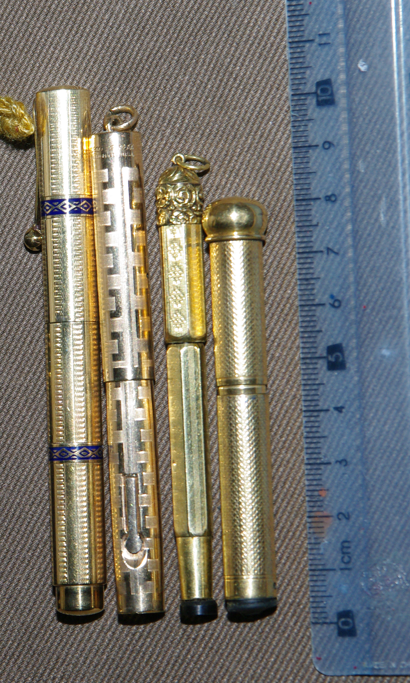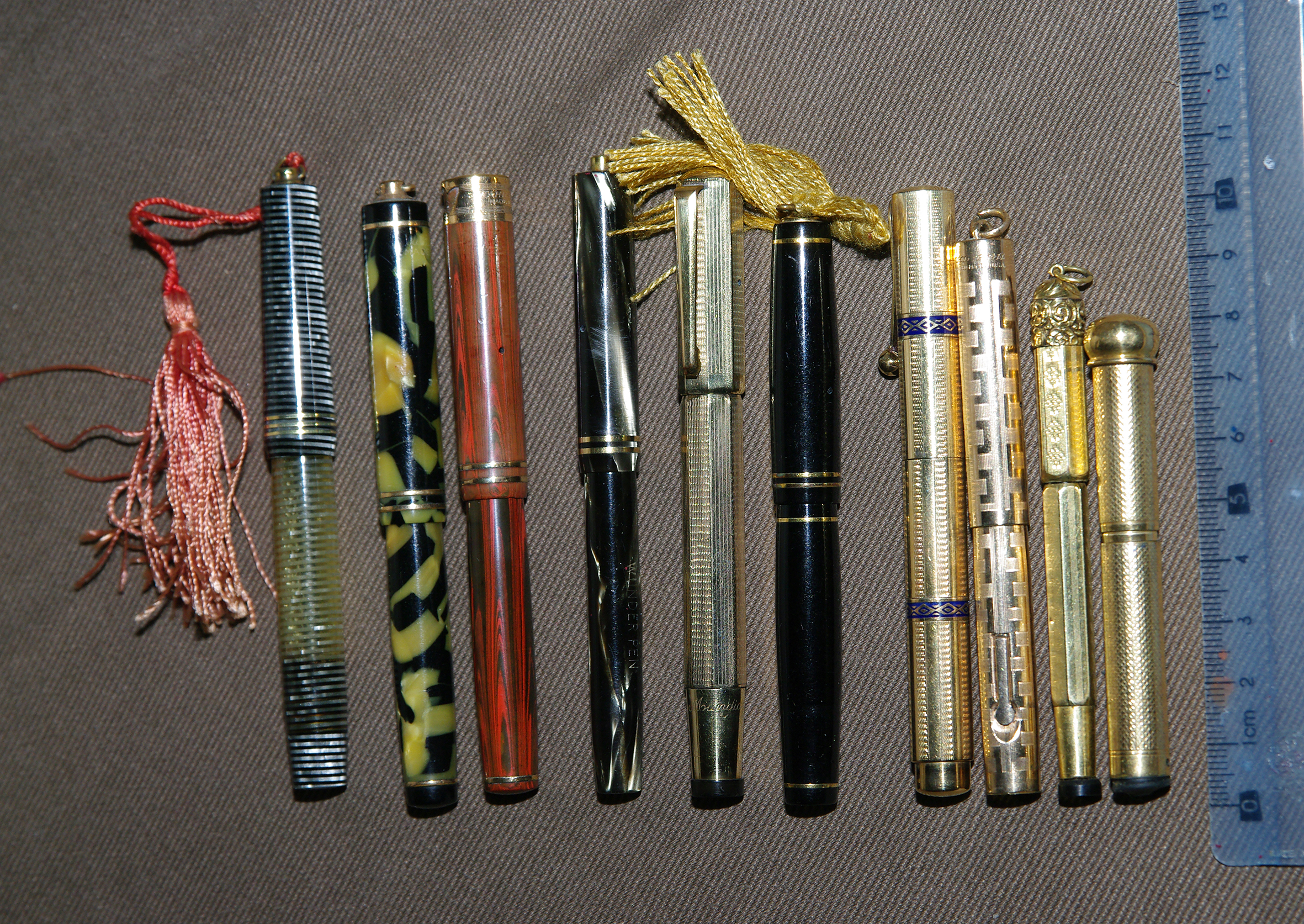 partendo da sinistra: Wahl All-Metal Pen, Aurora Novum, Eversharp Bantam, vecchia cartuccia Sheaffer