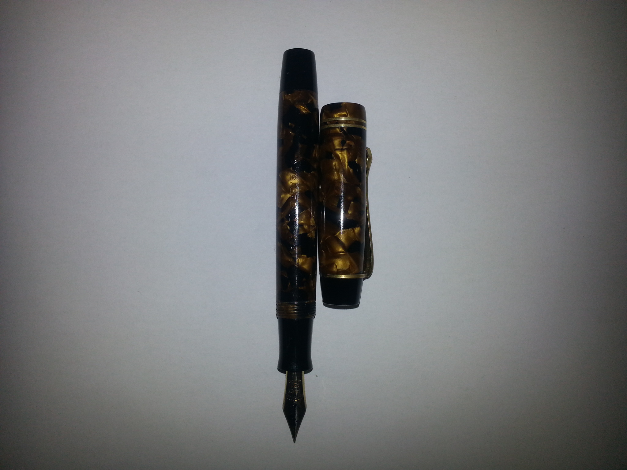Non so precisamente la marca, la presi ad un pen show a Napoli un po' di tempo fa. Il pennino è messo bene, per essere una signorina con qualche annetto 😉 peccato per questo piccolo "incidente" che ancora non sono riuscita a riparare, mi manca il coraggio di usare la colla, ho paura di fare peggio. Confido che quel coraggio prima o poi arrivi. 🤞🏻