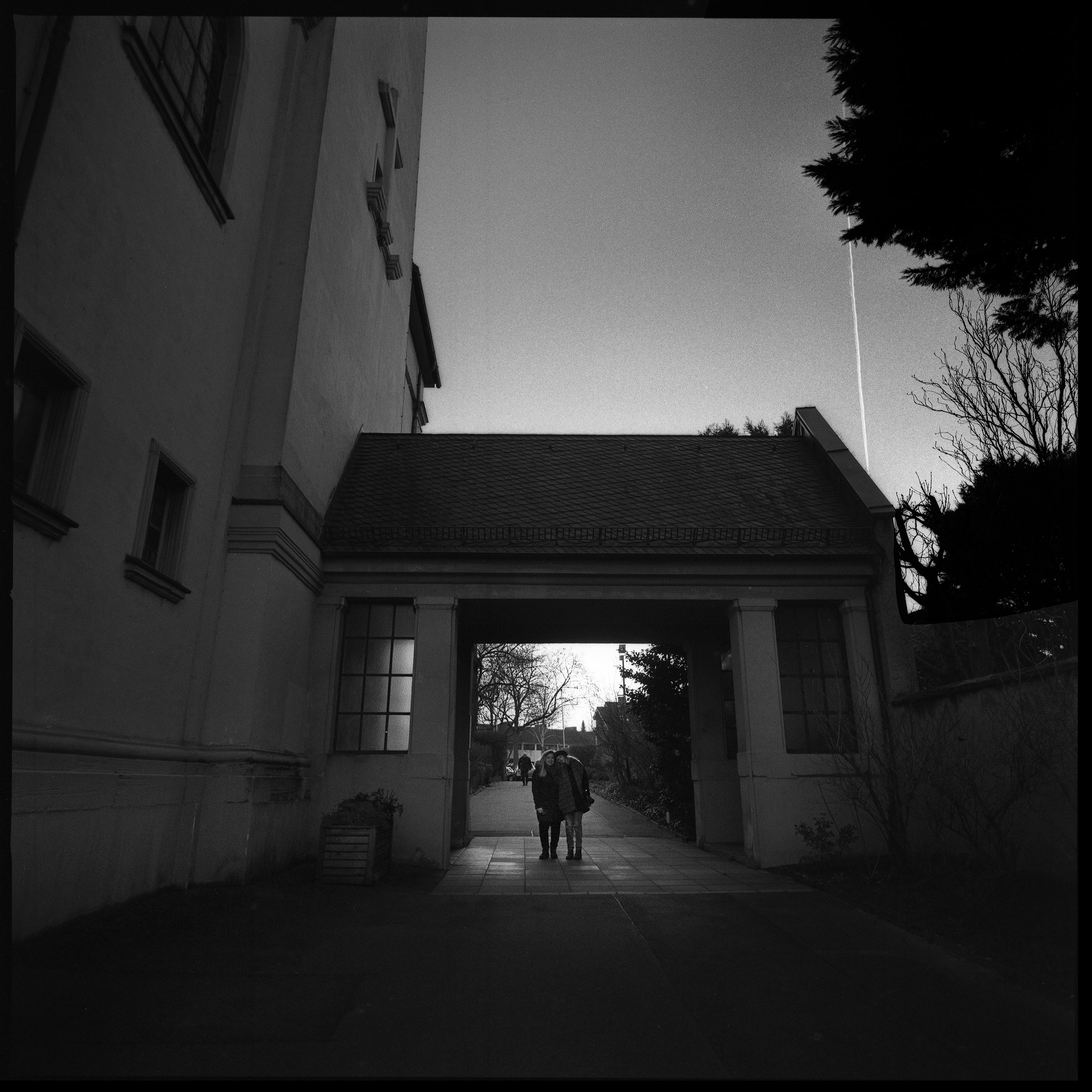 Noterete che l'imagine ottenuta direttamente sul sensore (a destra) é più nitida, e quanto al dettaglio delle alte luci e nelle ombre vince a mani basse. Però l'immagine ottenuta sulla pellicola 6x6 (Delta 100), con lo stesso obiettivo, é secondo me più viva e più bella.